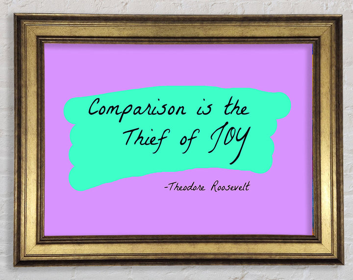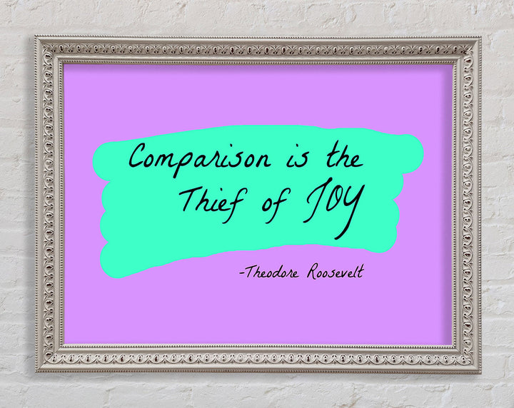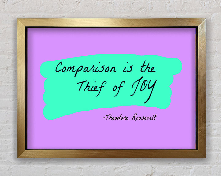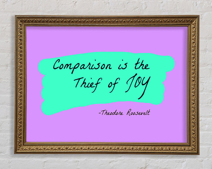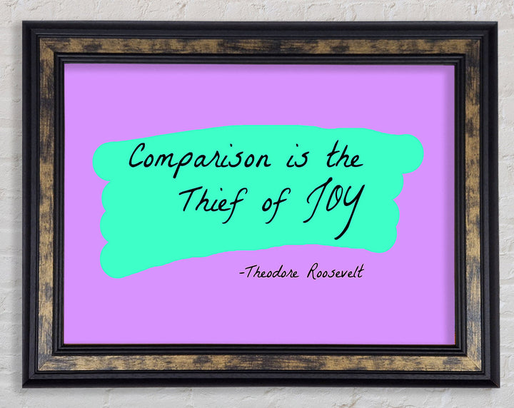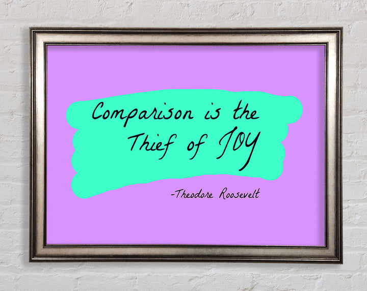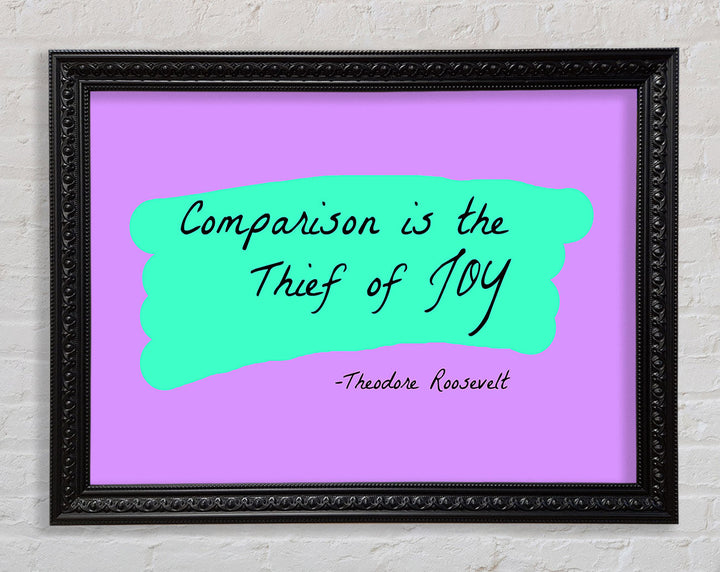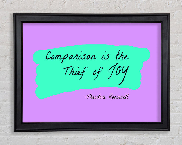 Add a touch of inspiration to your home with the Theodore Roosevelt "Comparison Is The Thief Of Joy" Framed Print. This beautifully crafted framed art piece serves as a daily reminder to focus on your own journey. Available in six sizes, from small to oversized, this print can fit any space perfectly. Choose from a variety of colors to match your décor. Handmade in the United Kingdom, each frame is carefully constructed to ensure high quality. Ready to hang, this framed art makes it easy to enhance your living room, bedroom, or office instantly. Elevate your space with meaningful art that speaks to the soul.