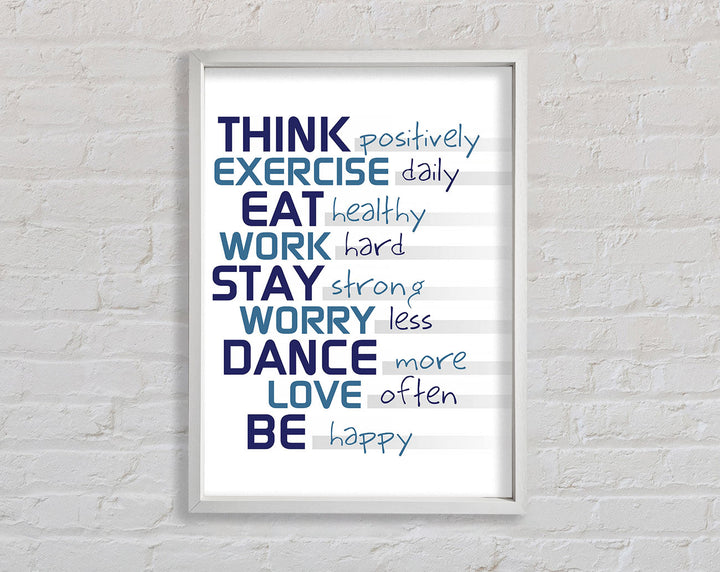 Brighten up your space with the Think Exercise Eat Framed Print, a perfect piece of framed art that combines style and motivation. This beautiful print is handmade in the United Kingdom, ensuring high-quality craftsmanship. Available in six sizes, from small to oversized, it fits any room, whether it's your home gym, kitchen, or office. Choose from a variety of colors to match your decor perfectly. Each piece is ready to hang, so you can effortlessly enhance your space. The inspiring "Think Exercise Eat" message serves as a daily reminder to live a balanced and healthy life. Elevate your wall decor with this stunning framed art today!