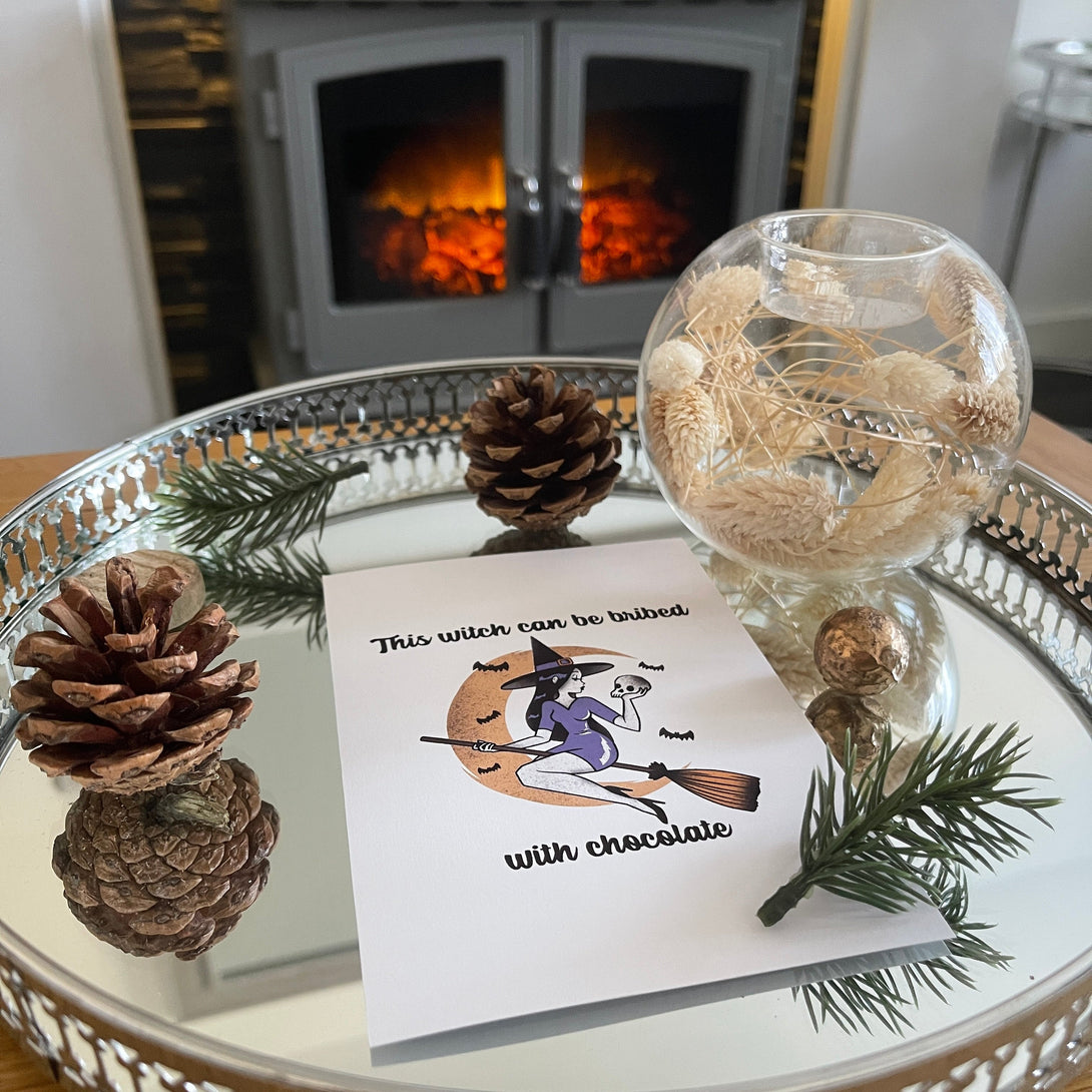 This Witch Can Be Bribed Autumn Halloween Seasonal Wall Home Decor Print