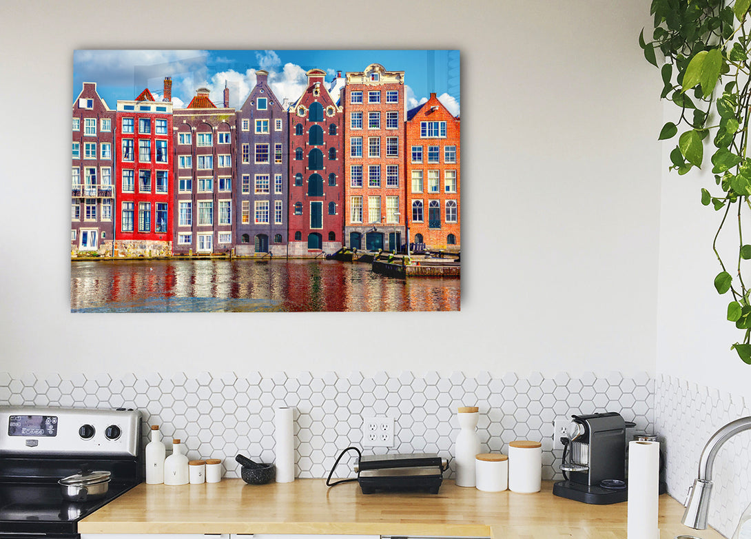 Tightly Packed Houses acrylic print, UV printed onto 5mm thick acrylic glass. Comes with everything you need to hang on your wall.