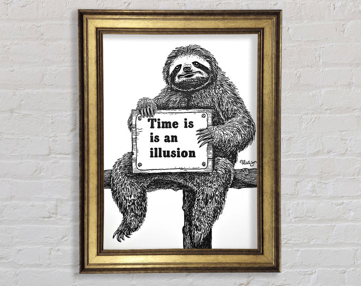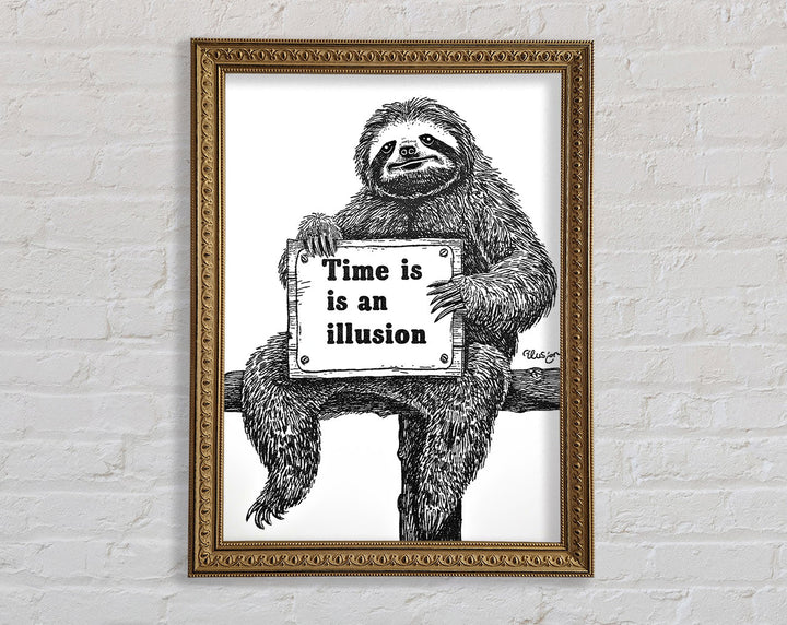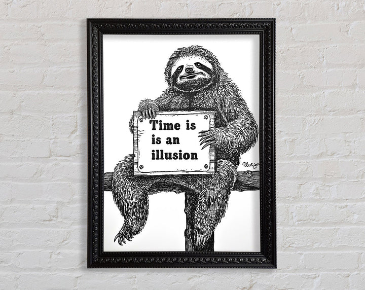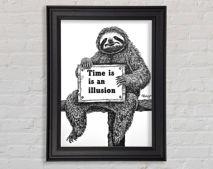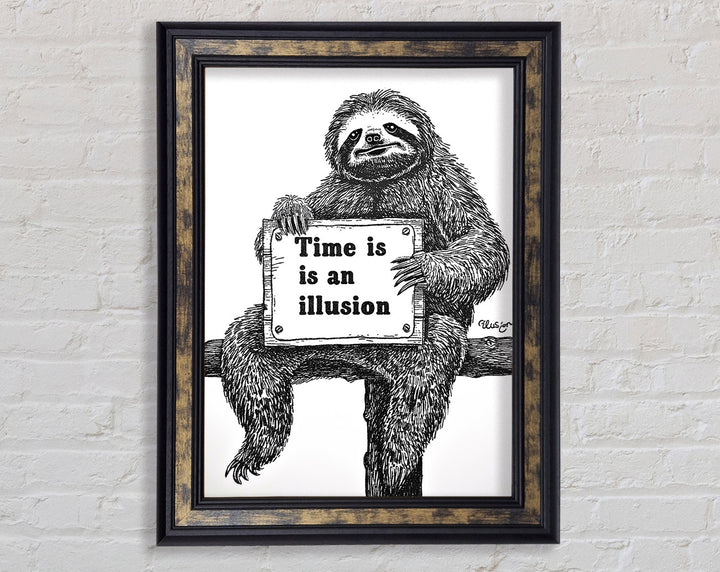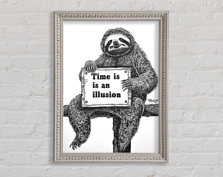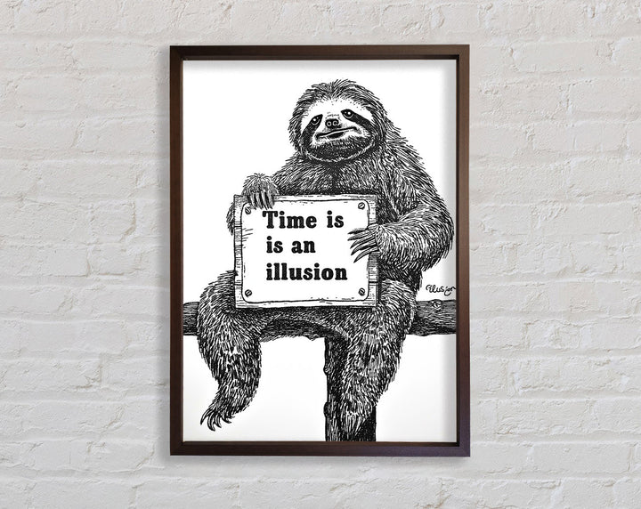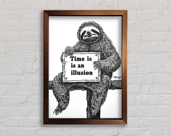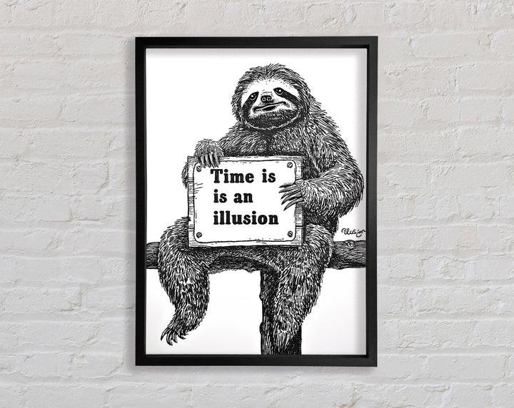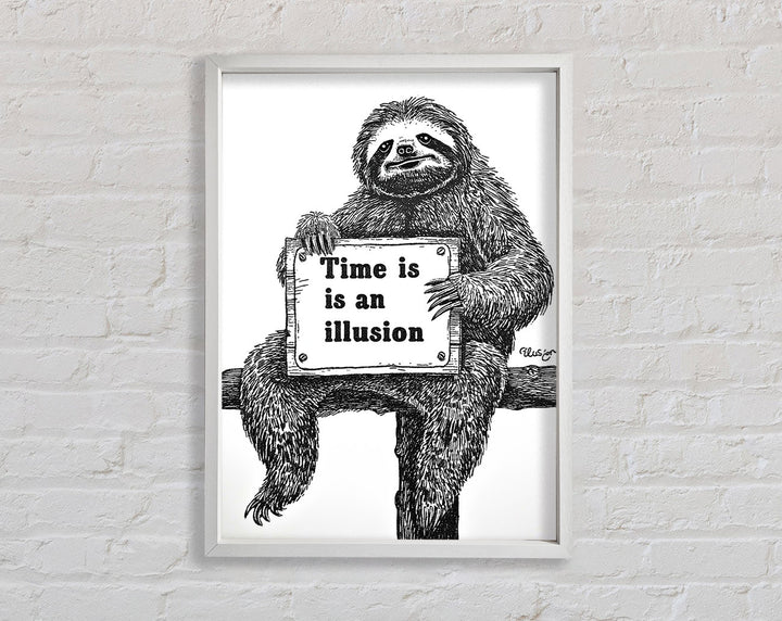 Introducing the "Time Is An Illusion Sloth" Framed Print, a delightful piece of framed art that adds charm and whimsy to any space. This captivating print features a relaxed sloth reminding you that time is but an illusion. Available in six sizes, from small to oversized, this print fits perfectly in any room. Choose from a variety of colors to match your décor effortlessly. Each piece is handmade in the United Kingdom, ensuring high-quality craftsmanship. Ready to hang, this framed art makes decorating simple and stress-free. Add a touch of fun and inspiration to your home or office with this unique sloth-themed artwork.