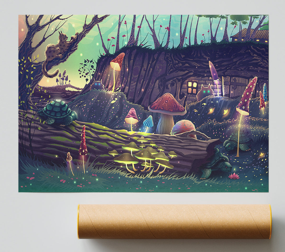 Our Toadstool Village Poster is printed 260 GSM premium lustre paper that offers vibrant colours and exceptional detail.
