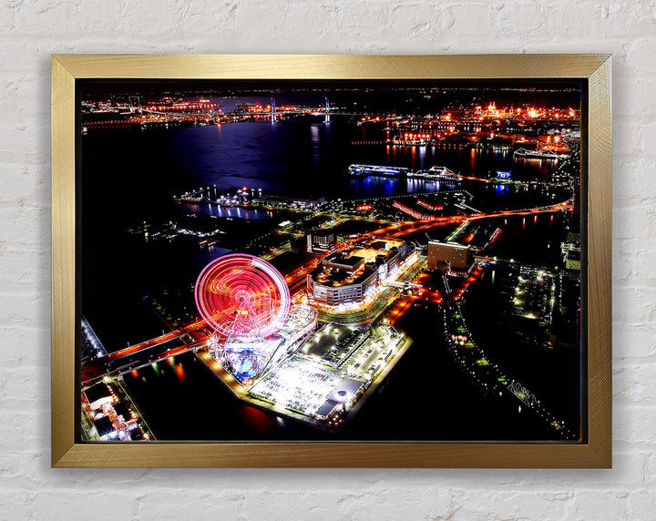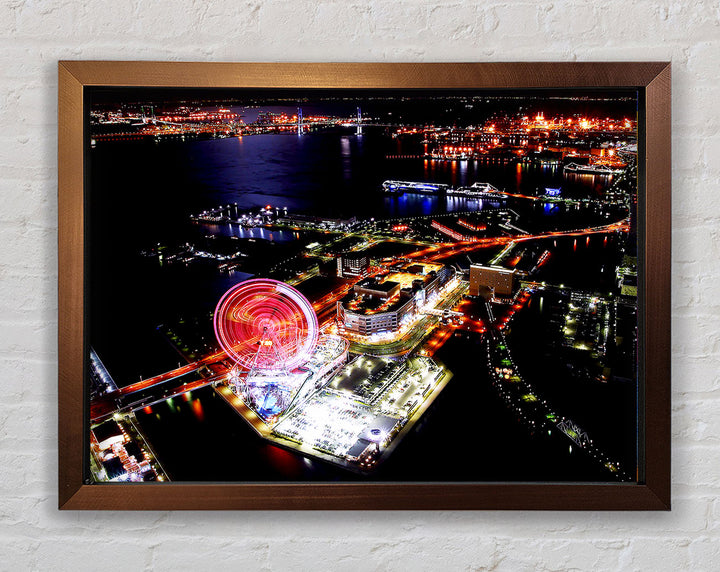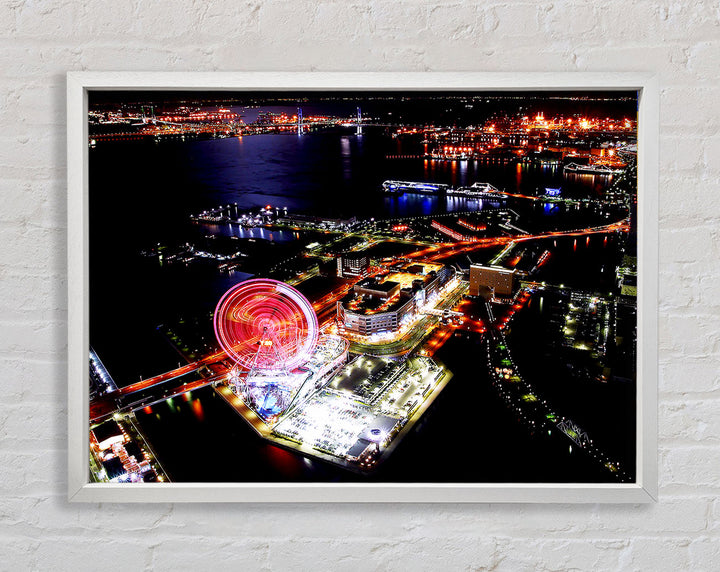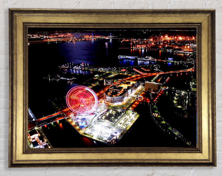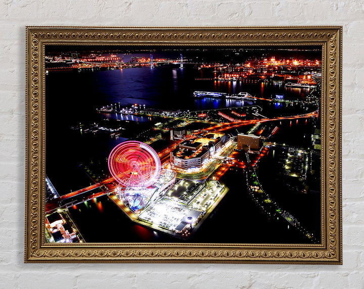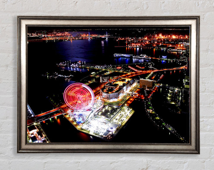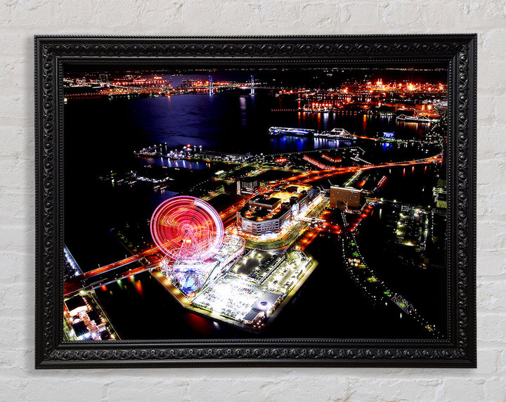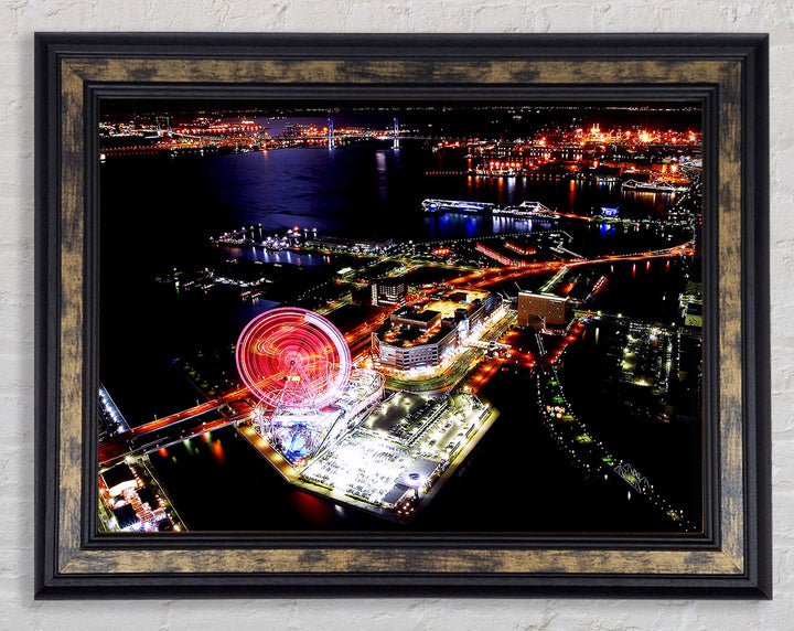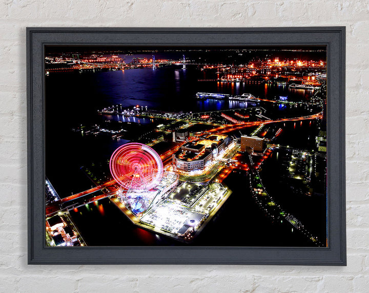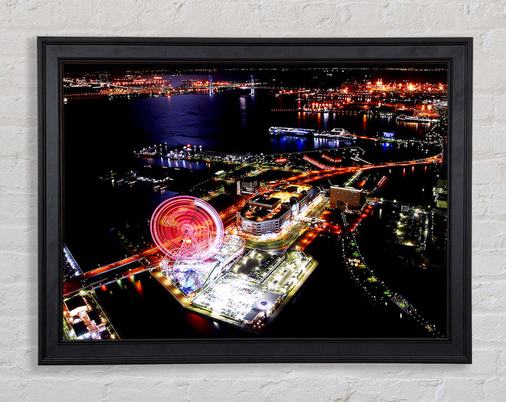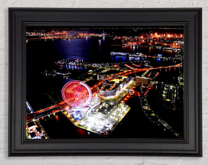 Tokyo City Funfair Night Lights Framed Print