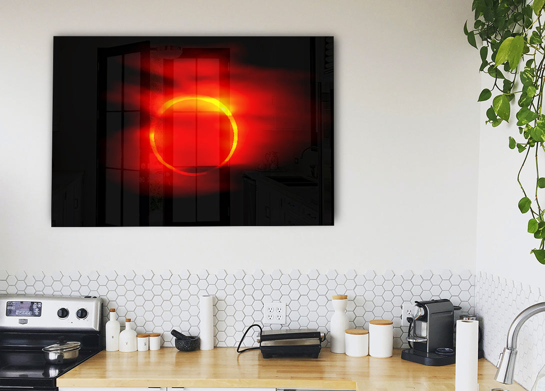 Total Eclipse Red acrylic print, UV printed onto 5mm thick acrylic glass. Comes with everything you need to hang on your wall.