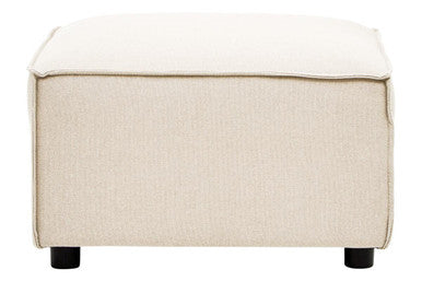 Upholstered in smooth cream fabric and generously padded, this ottoman brings a luxe, lounge-worthy feel to living rooms of every style. Measuring 45H x 70D x 70W cm, its balanced proportions tuck neatly in front of a sofa or between modular sections.