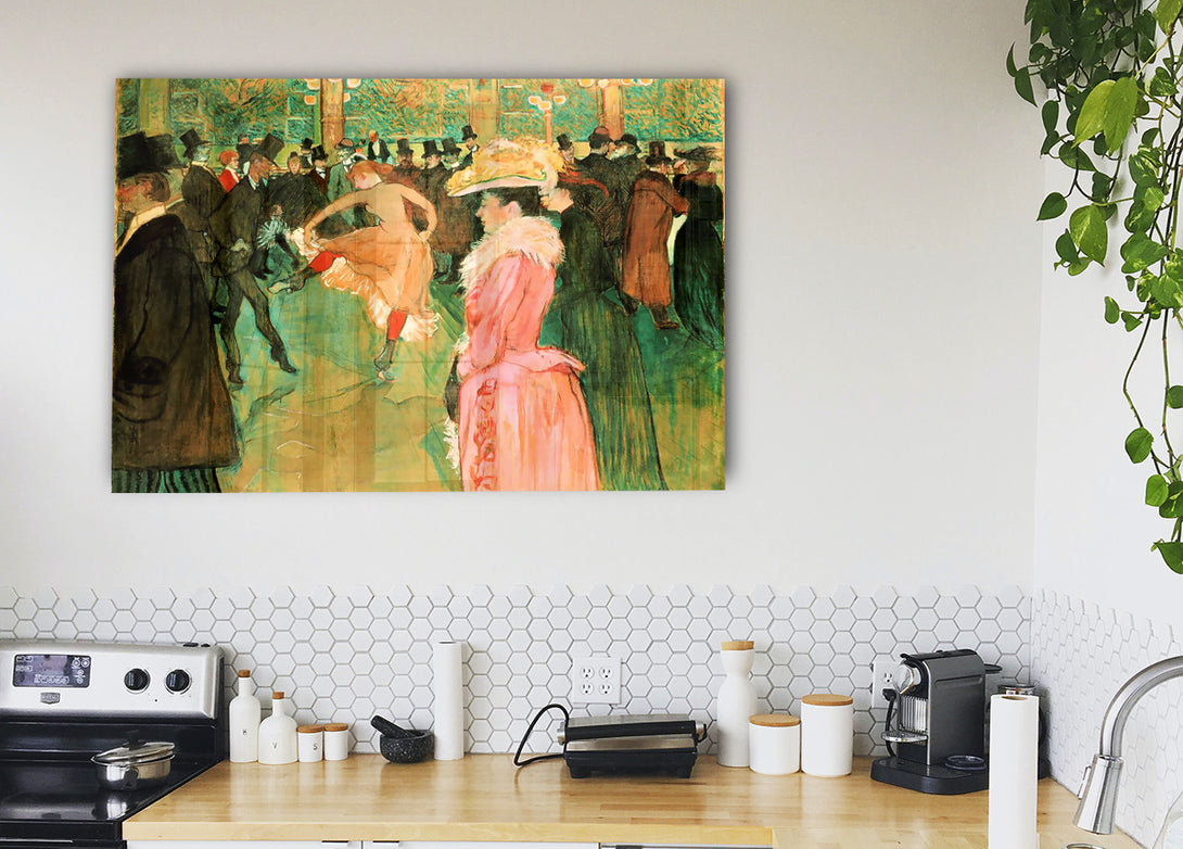 Toulouse Lautrec At The Moulin Rouge acrylic print, UV printed onto 5mm thick acrylic glass. Comes with everything you need to hang on your wall.