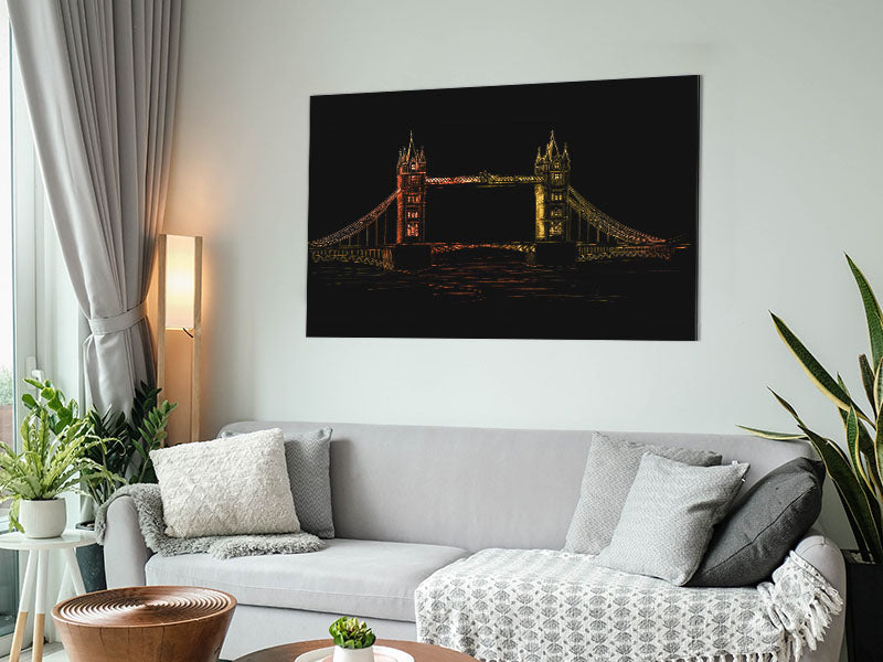 Tower Bridge Glow Printed on brushed aluminium dibond. A modern way to display art and easy to maintain.