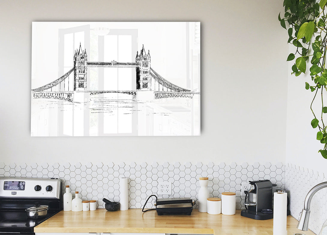Tower Bridge Outline 4 acrylic print, UV printed onto 5mm thick acrylic glass. Comes with everything you need to hang on your wall.