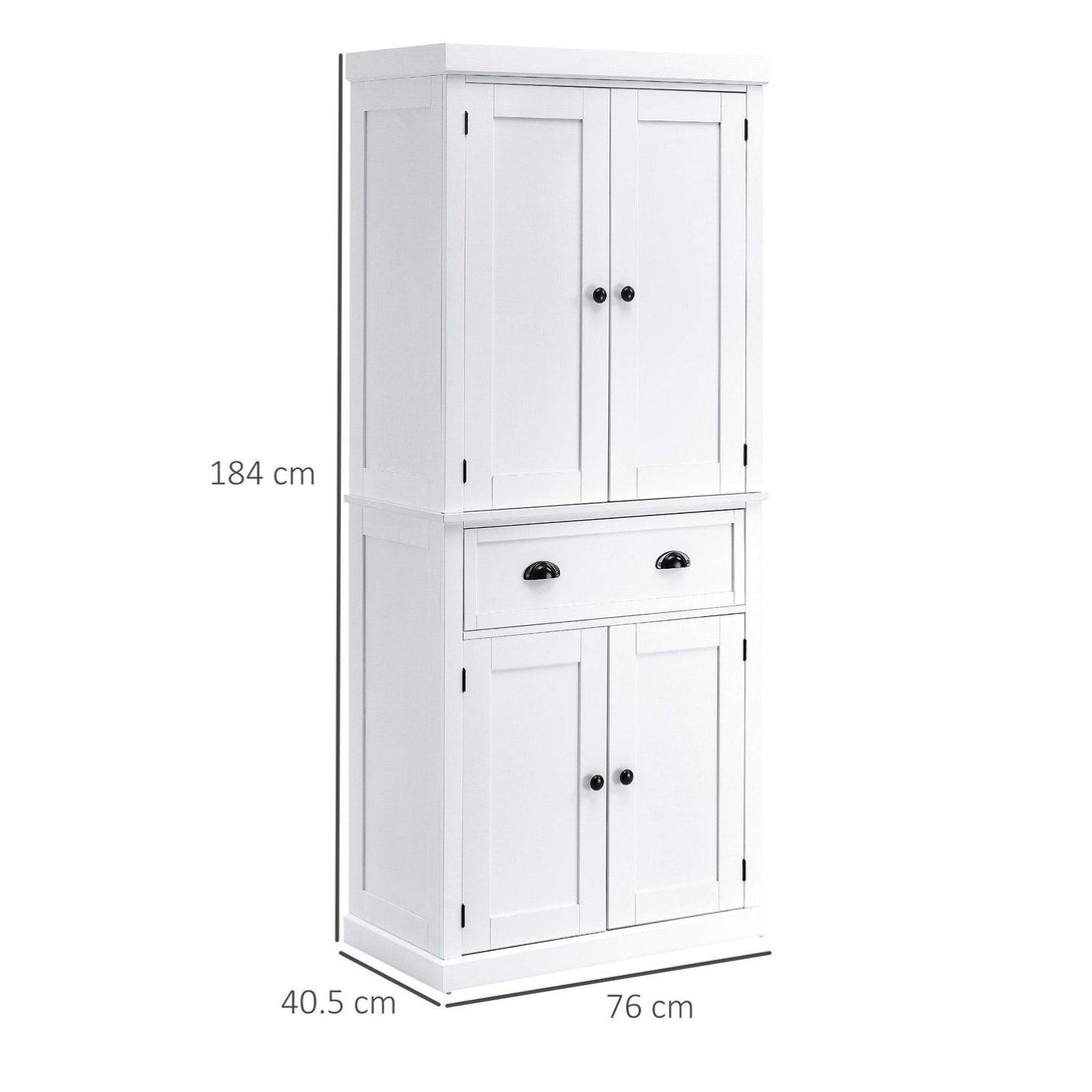 There's no such thing as enough kitchen storage. Ready to make your decision to maximize their storage with the free standing kitchen units? Made of engineered wood to ensure reinforced strength and stability, this 184cm tall storage cabinet showcasing a top a bottom cabinet with 3 adjustable shelves, alongside a slide-out drawer in the middle which is ideal for storing cutlery. Let modern-looking beauty take centre stage in your home with this kitchen dresser from HOMCOM.