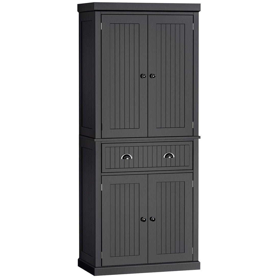 This HOMCOM tall storage cabinet is an ideal solution for any kitchen. Made from MDF with reinforced backboards, it is ideal for storing all your kitchen items from accessories, utensils, dry good and even your cookbooks. The kitchen larder cupboard has 4 doors with 3 adjustable shelves for you to position as required. The door handles and knobs are having a brushed nickel finish, giving the unit elegance and style. This is a great unit to have to match any room décor.