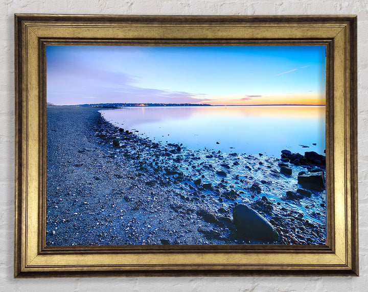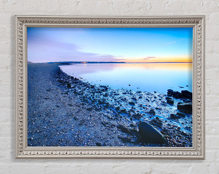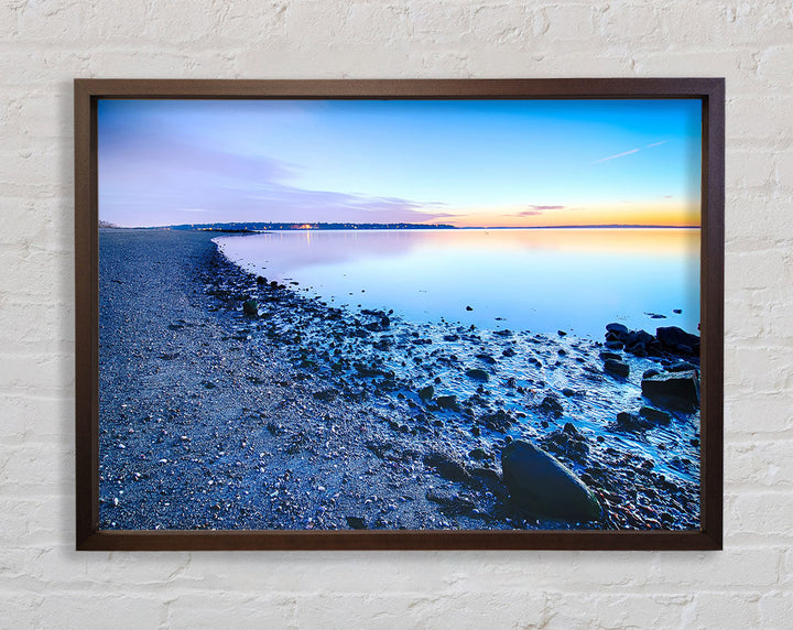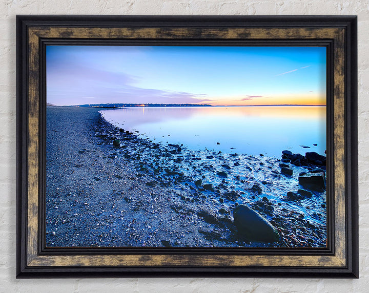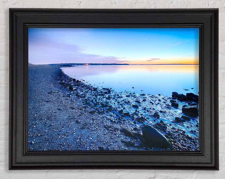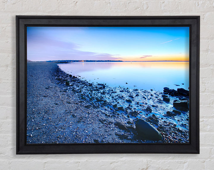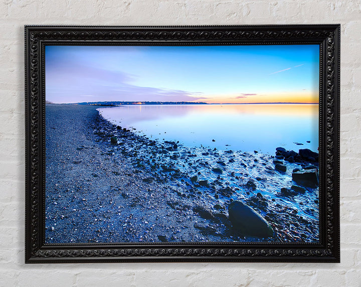 Introducing the Tranquil Ocean Blues Framed Print, a stunning piece of framed art that brings the serene beauty of the ocean into your home. Handmade in the United Kingdom, this exquisite print is available in six different sizes, from small to oversized, ensuring a perfect fit for any space. The vibrant colors capture the calming hues of the ocean, making it an ideal addition to any room.