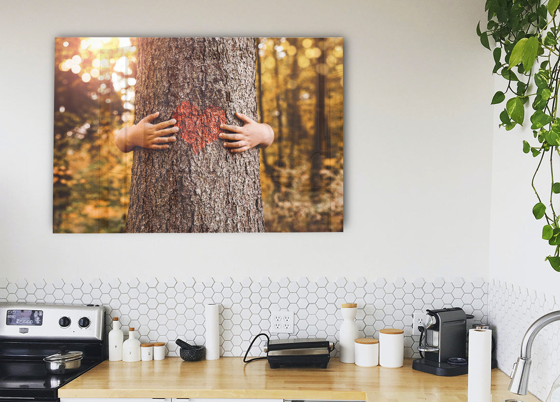 Tree hugger acrylic print, UV printed onto 5mm thick acrylic glass. Comes with everything you need to hang on your wall.