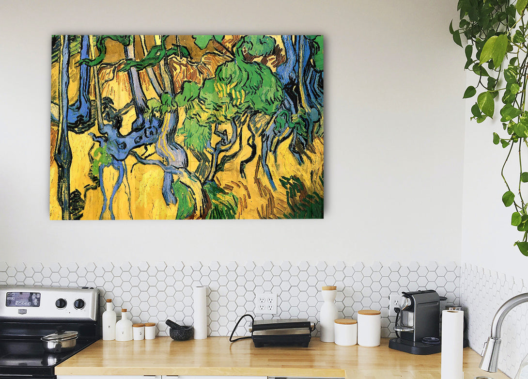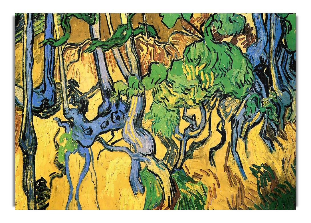 Tree Roots And Trunks By Van Gogh acrylic print, UV printed onto 5mm thick acrylic glass. Comes with everything you need to hang on your wall.