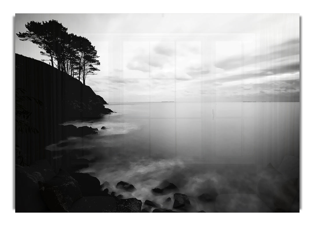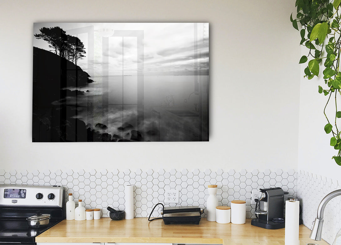 Tree Top Ocean Calm B~w acrylic print, UV printed onto 5mm thick acrylic glass. Comes with everything you need to hang on your wall.