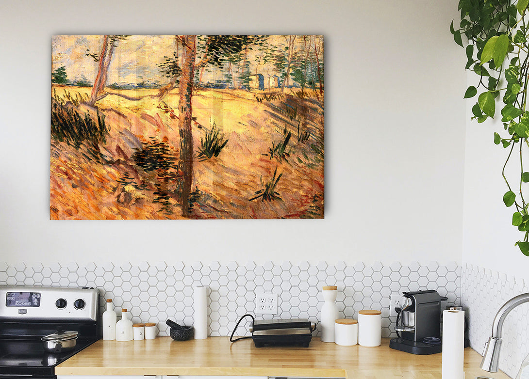 Trees In A Field On A Sunny Day By Van Gogh acrylic print, UV printed onto 5mm thick acrylic glass. Comes with everything you need to hang on your wall.