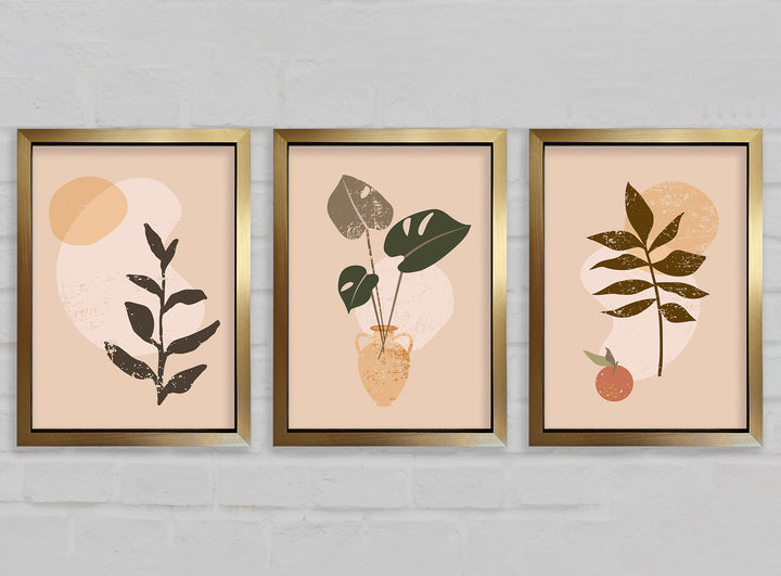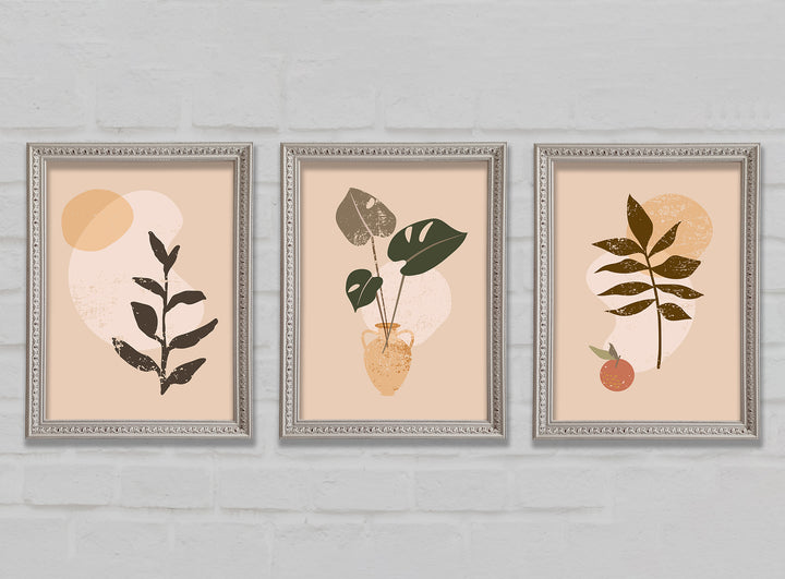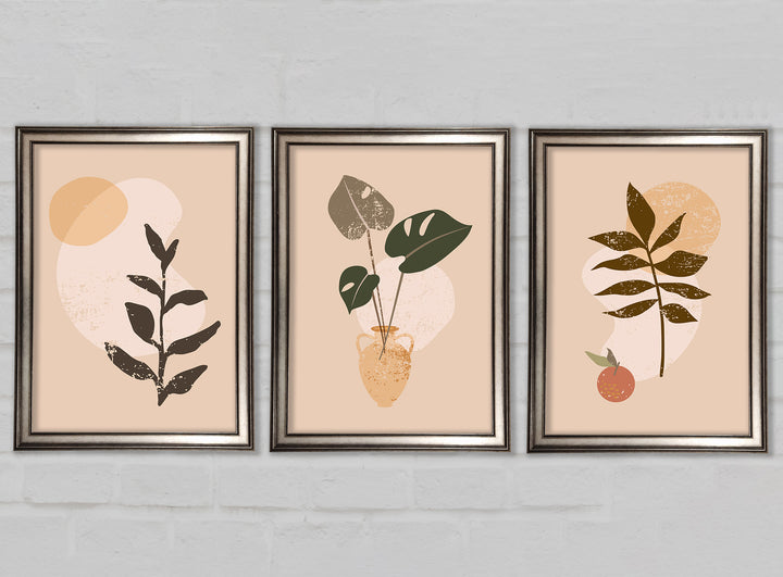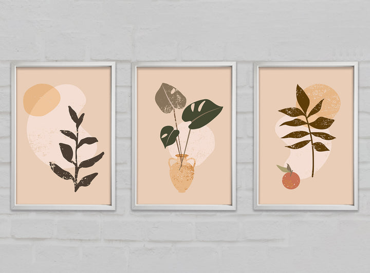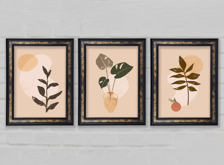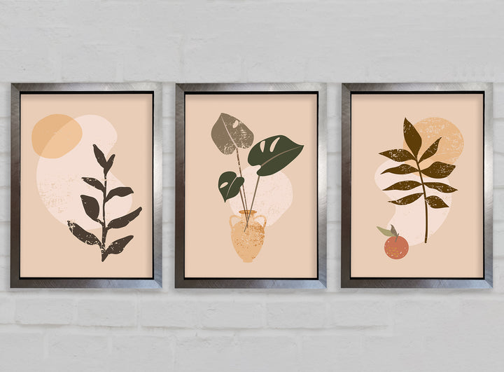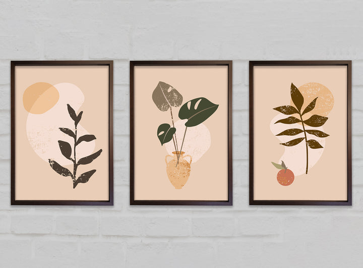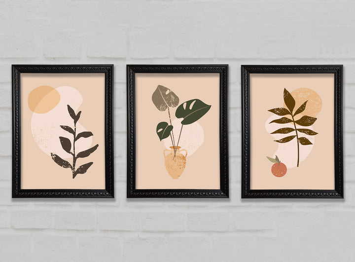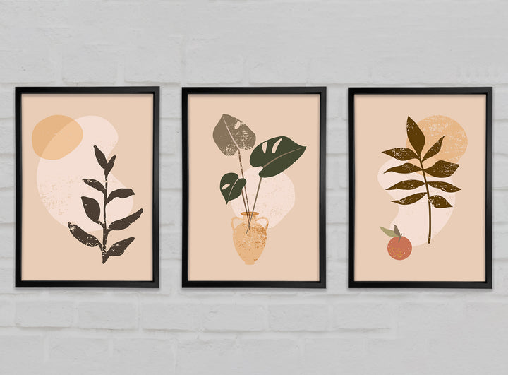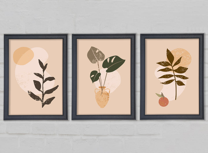 Trio Of Bohemian Plants set of 3 framed print wall art, available in mutiple frame colours. Ready to hang from the box and handmade in the United Kingdom.