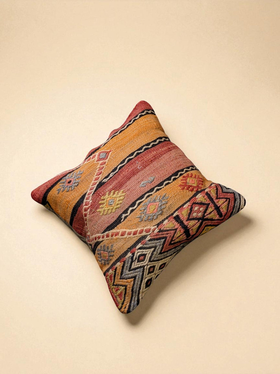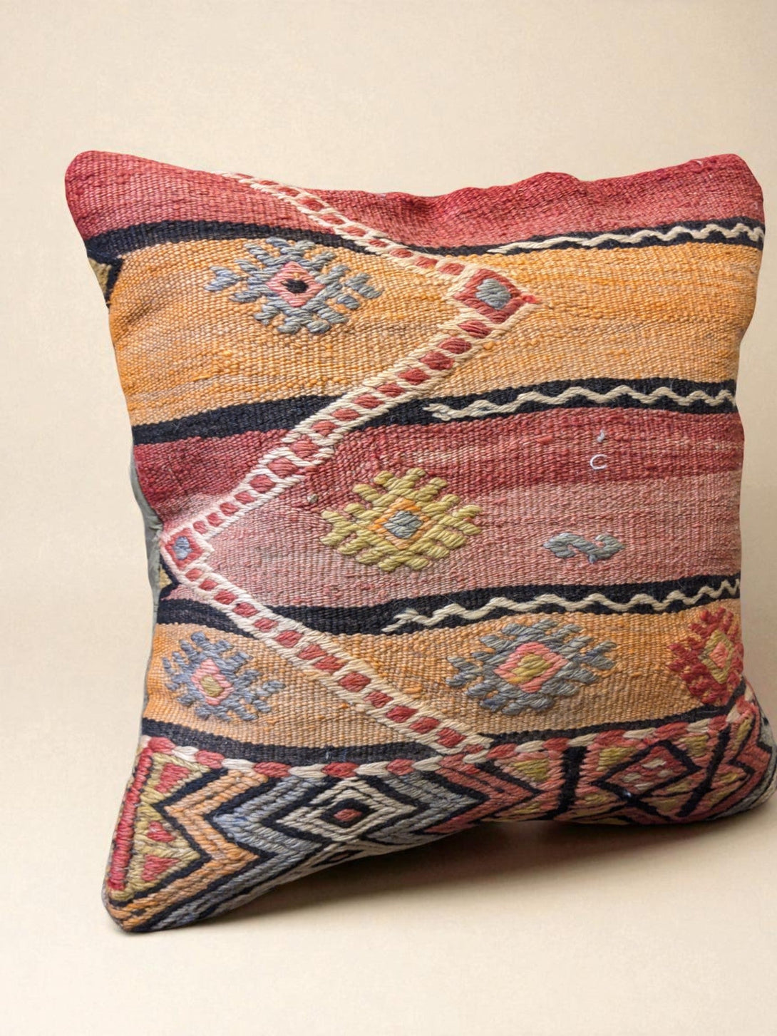 Turkish Kilim Vintage Cushion Cover - 40 x 40 cm
