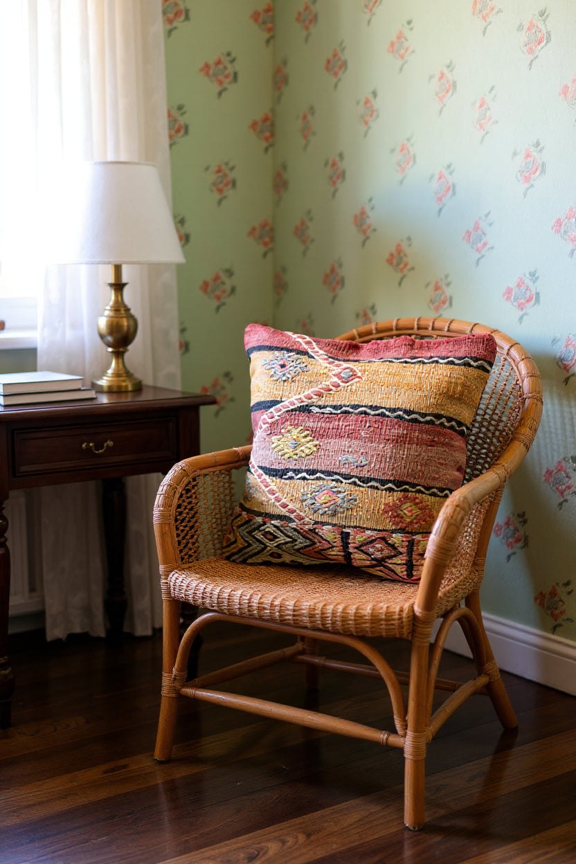 Tasselize cushion is a 46cm x 46cm handwoven wonder from Pakistan, crafted with vintage Turkish kilim! Its woolen threads bring a modern look that'll pop in any living room, bedroom, or kids room. Feel its flatweave pile and add a splash of life to your decor. Durable and made with quality, this timeless piece is sure to match your existing furniture and last for ages with proper care.