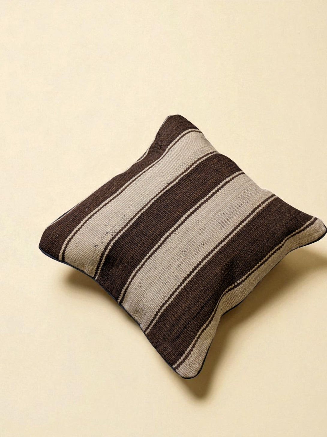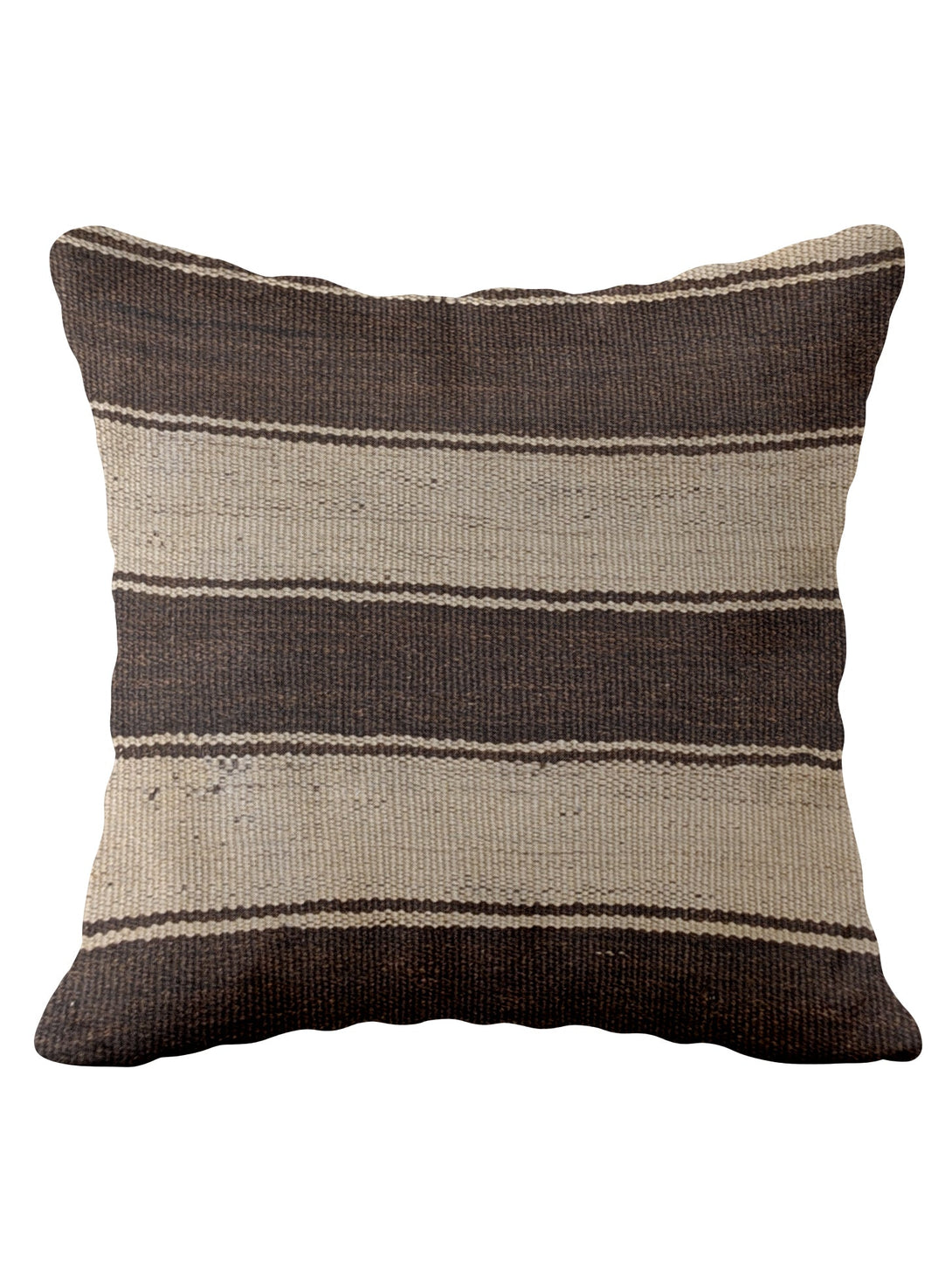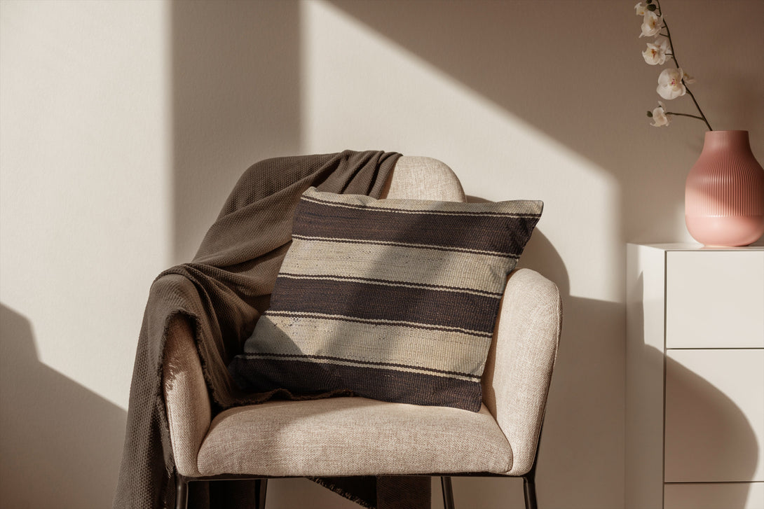 The Dreamloud cushion cover is crafted with care from a vintage Turkish kilim and handwoven in Pakistan with cotton backing. The unique design features an alternating stripes pattern among a lighter and darker shade of brown for a look that is both timeless and one-of-a-kind. Measuring 50cm x 50cm, the cushion cover is a perfect addition to your home.