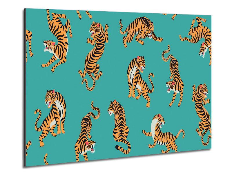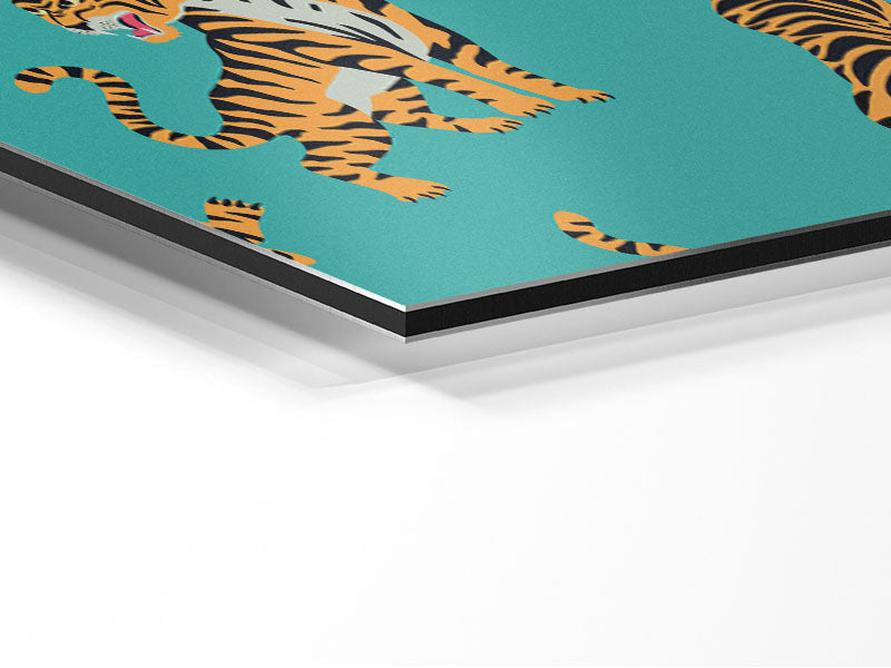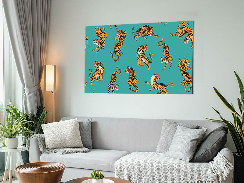 Turquoise Tiger Pattern Printed on brushed aluminium dibond. A modern way to display art and easy to maintain.