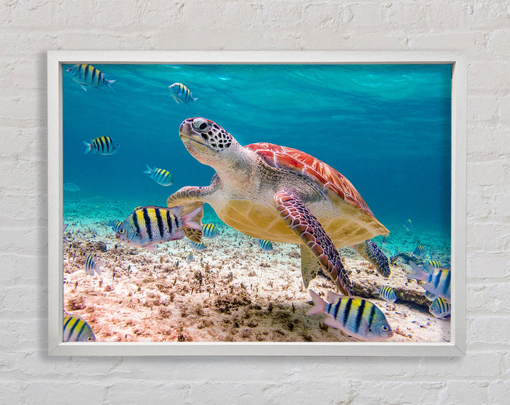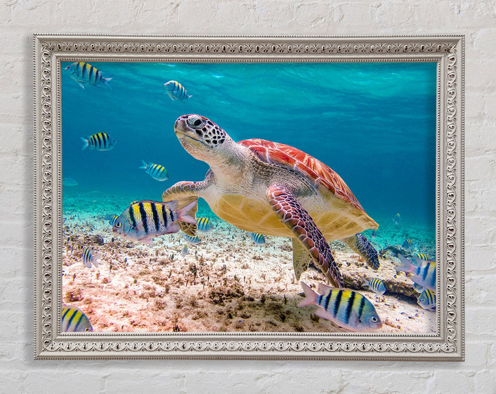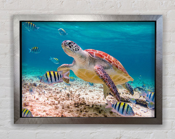 Bring the serene beauty of the ocean into your home with the Turtle Of The Ocean Framed Print. This stunning piece of framed art captures a majestic sea turtle swimming gracefully through crystal-clear waters. Available in six different sizes, from small to oversized, it fits perfectly in any space, whether it's your living room, bedroom, or office. Choose from a variety of colors to match your decor. Each print is handmade in the United Kingdom, ensuring exceptional quality and craftsmanship. Ready to hang right out of the box, this framed art is an effortless way to add a touch of nature's elegance to your walls.