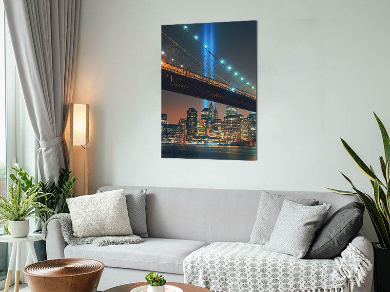 Twin Tower Remembrance Through The Bridge Printed on brushed aluminium dibond. A modern way to display art and easy to maintain.