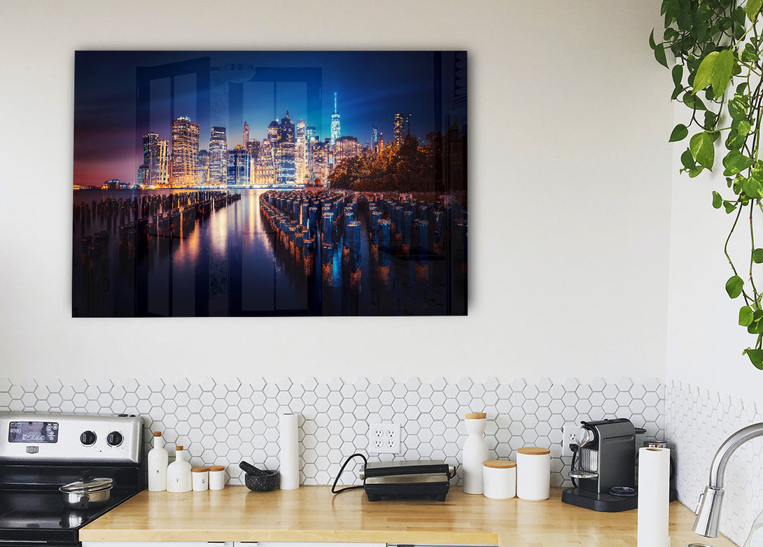 Twinkling Lights Of The Big City acrylic print, UV printed onto 5mm thick acrylic glass. Comes with everything you need to hang on your wall.
