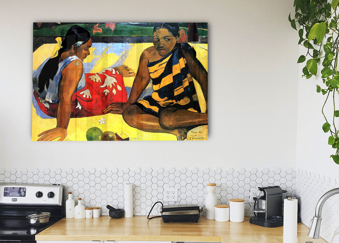 Two Women From Tahiti By Gauguin acrylic print, UV printed onto 5mm thick acrylic glass. Comes with everything you need to hang on your wall.