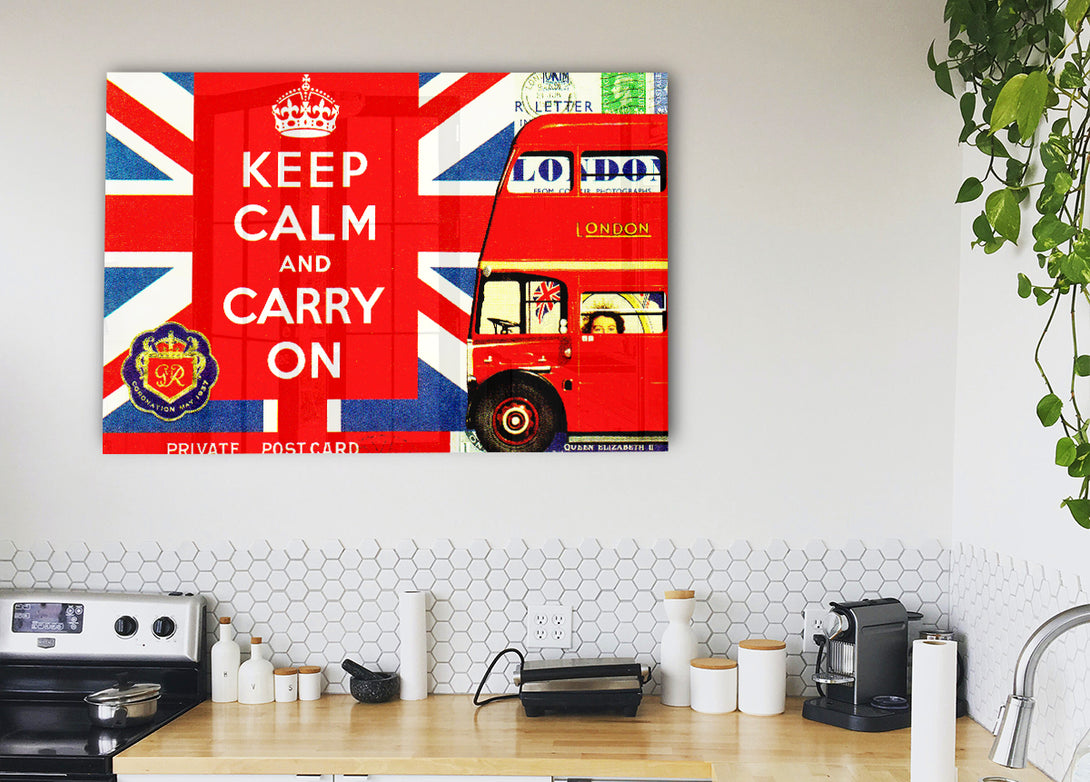 Uk Flag And Bus acrylic print, UV printed onto 5mm thick acrylic glass. Comes with everything you need to hang on your wall.