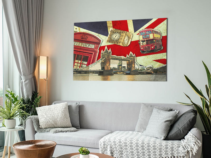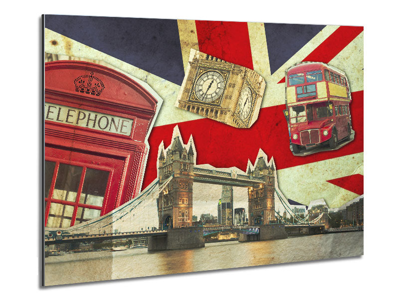 Union Jack London Icons Printed on brushed aluminium dibond. A modern way to display art and easy to maintain.