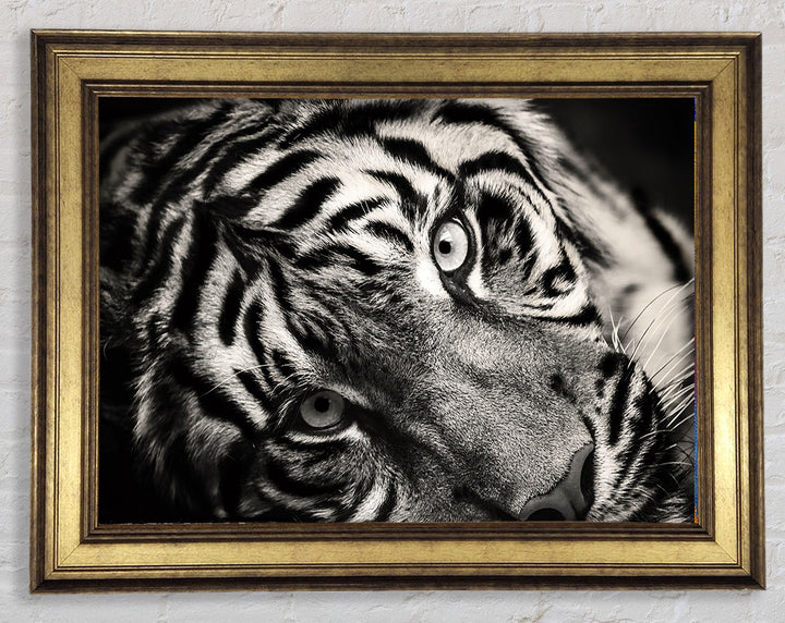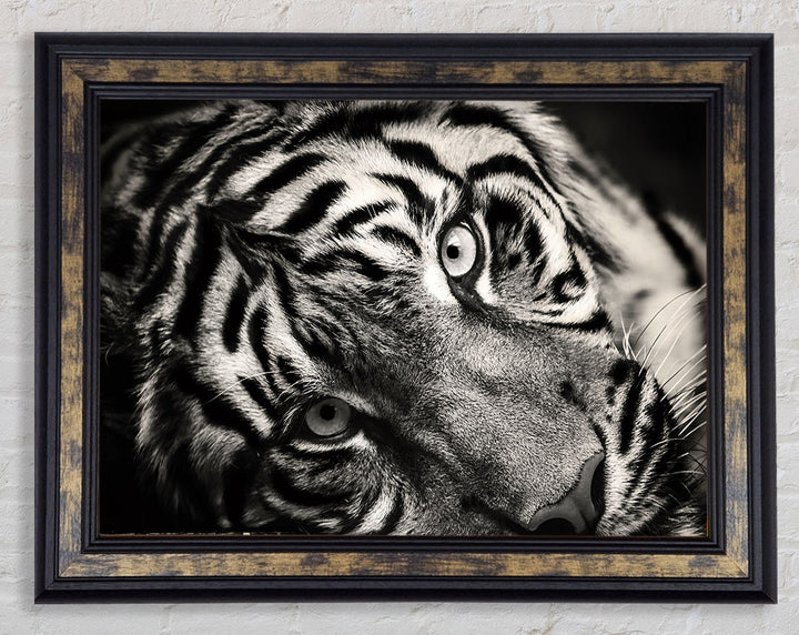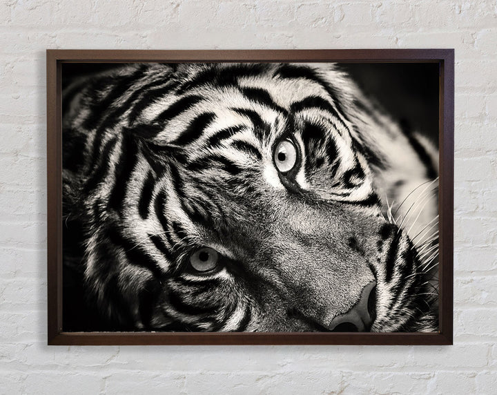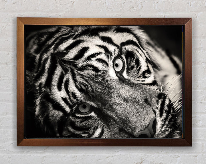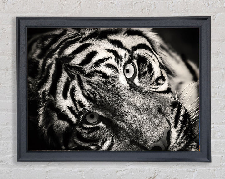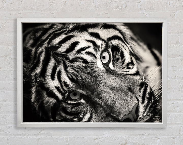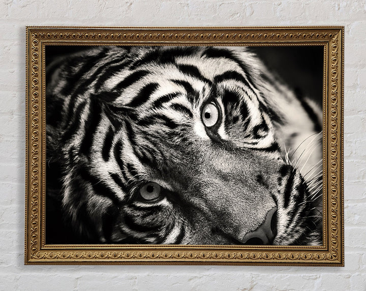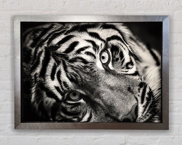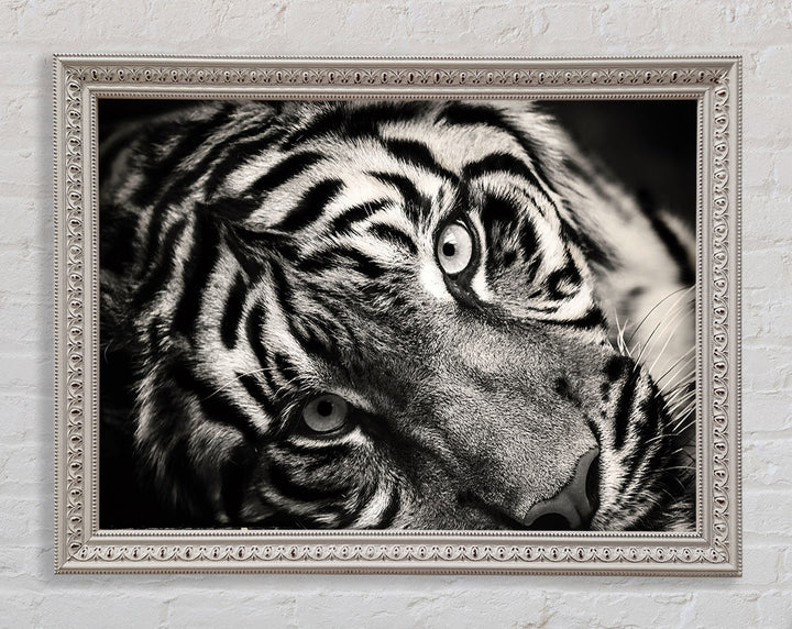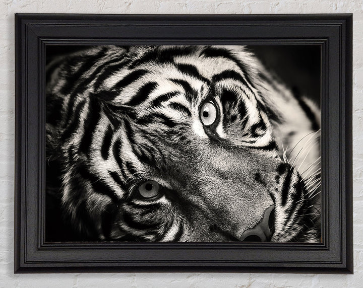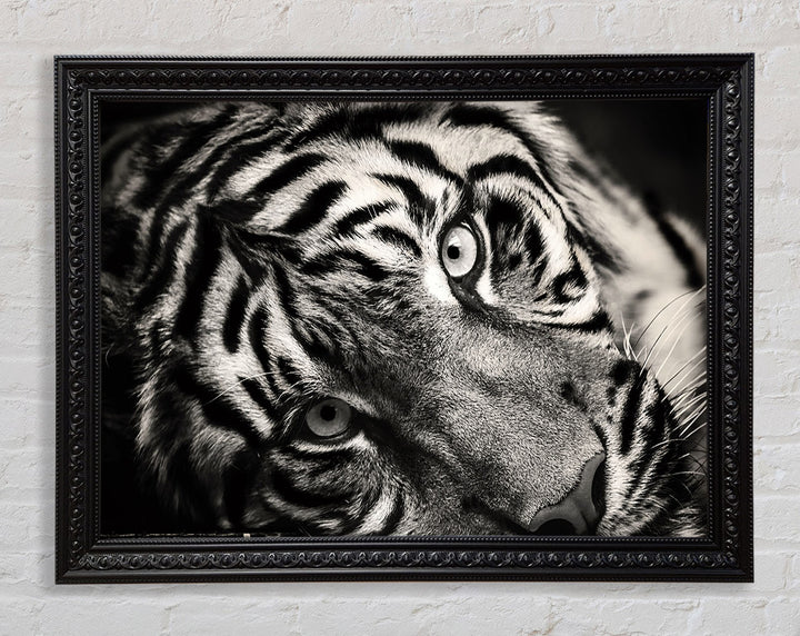 Bring the wild beauty of nature into your home with our "Up Close Tiger Lying Down" framed art. This stunning print captures every detail of the majestic tiger, making it a striking centerpiece for any room. Available in 6 sizes ranging from small to oversized, you can find the perfect fit for your space. Choose from a variety of frame colors to match your décor seamlessly. Each piece is handmade in the United Kingdom, ensuring high quality and craftsmanship. Plus, it's ready to hang, so you can enjoy your new artwork without any hassle. Elevate your interior design with this captivating framed print today!