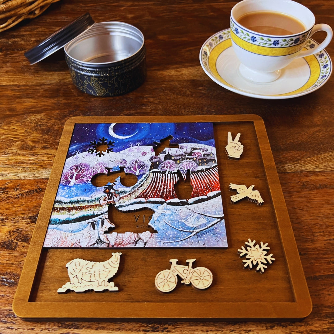 Our MINI QT puzzles are laser cut from thick, 4mm plywood and include 5 whimsies - they make a great puzzle snack!