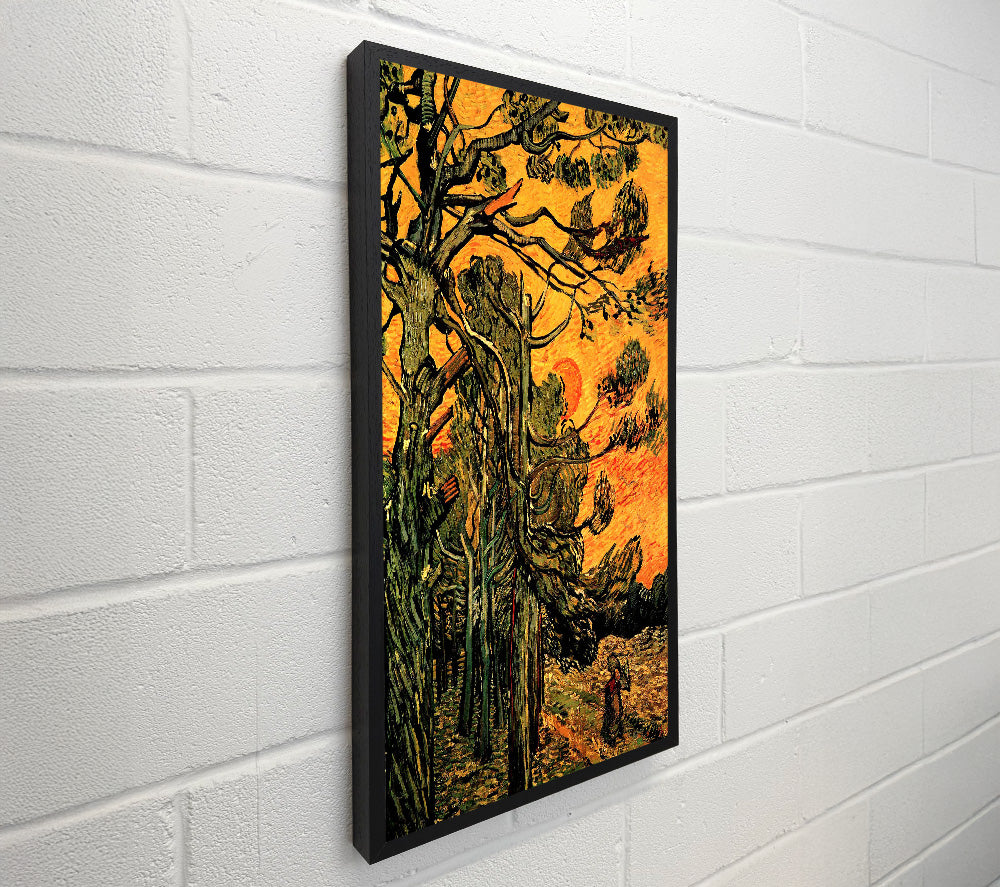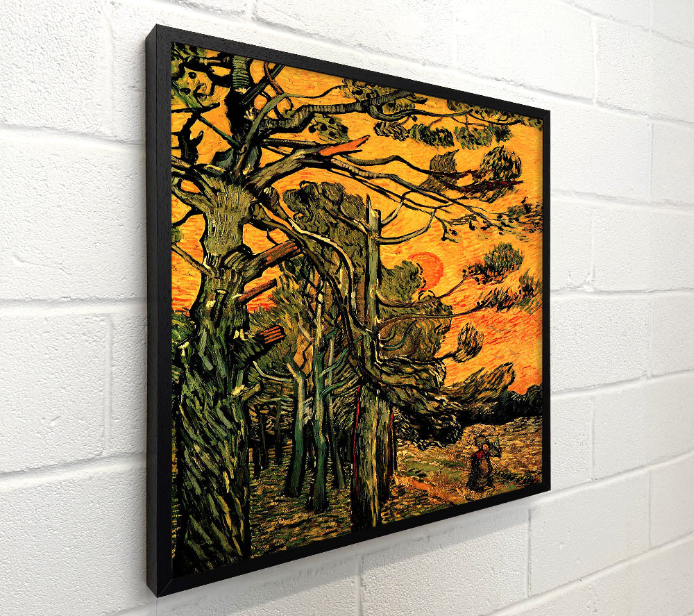 Van Gogh Pine Trees Against A Red Sky With Setting Sun