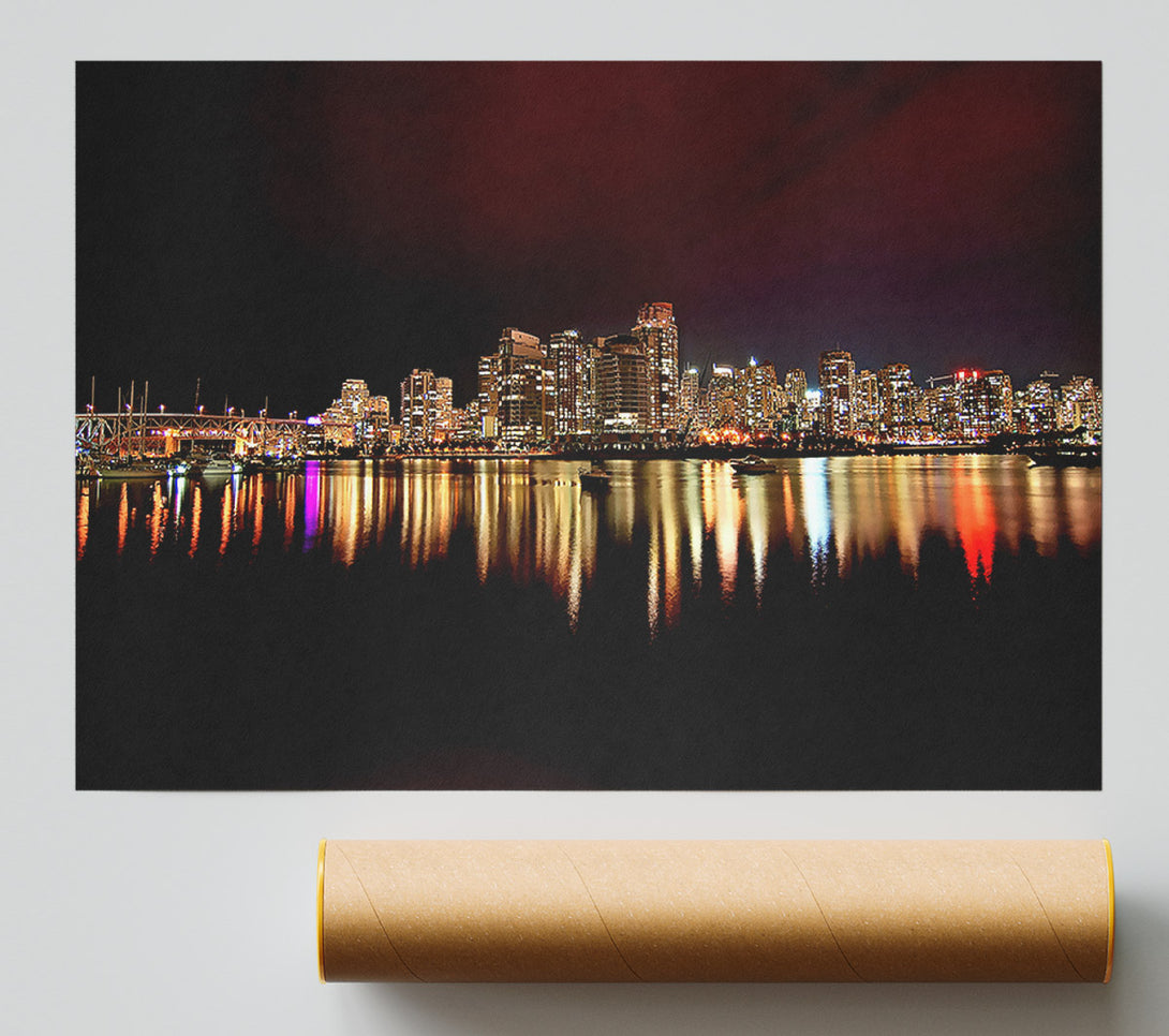 Our Vancouver City Nights Poster is printed 260 GSM premium lustre paper that offers vibrant colours and exceptional detail.