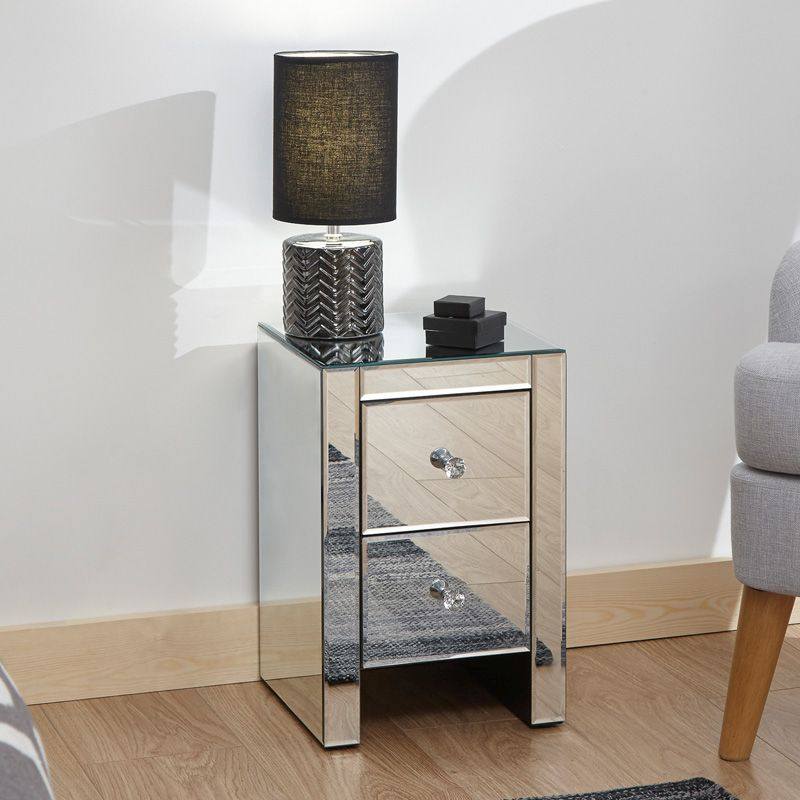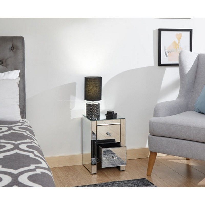 Venetian Slim Bedside Table Mirrored 2 Drawers