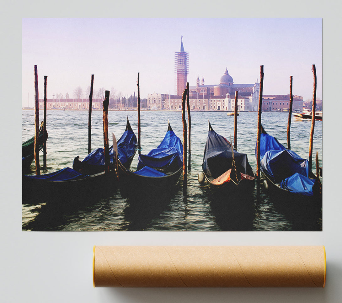 Our Venice Gondola Line-Up Poster is printed 260 GSM premium lustre paper that offers vibrant colours and exceptional detail.