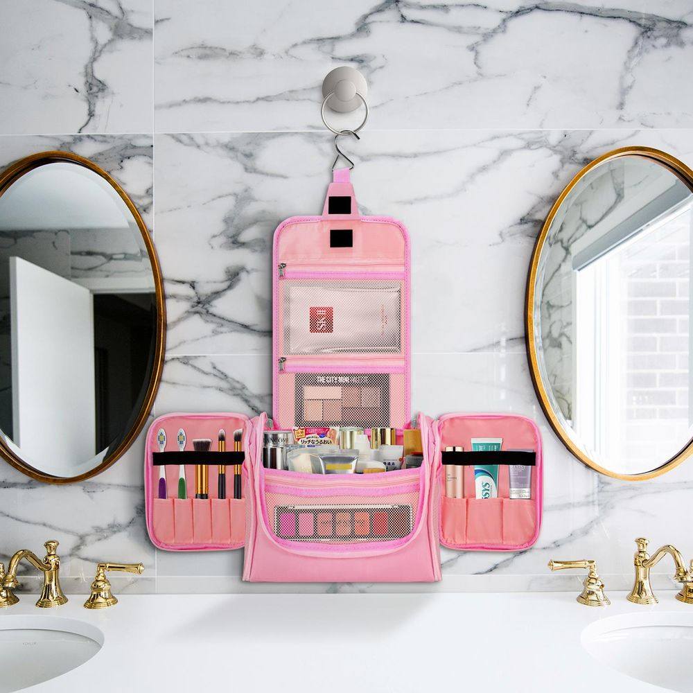CONVENIENT DESIGN: With a reinforced double-stitched handle, two zippers, and a hook that works fantastically on your bathroom or other places, this toiletry bag offers the most practical design and plenty of space for your essentials. All of your essential toiletries can be neatly stored in multiple compartments with functional mesh pockets and elastic loops without taking up a lot of room in your luggage.