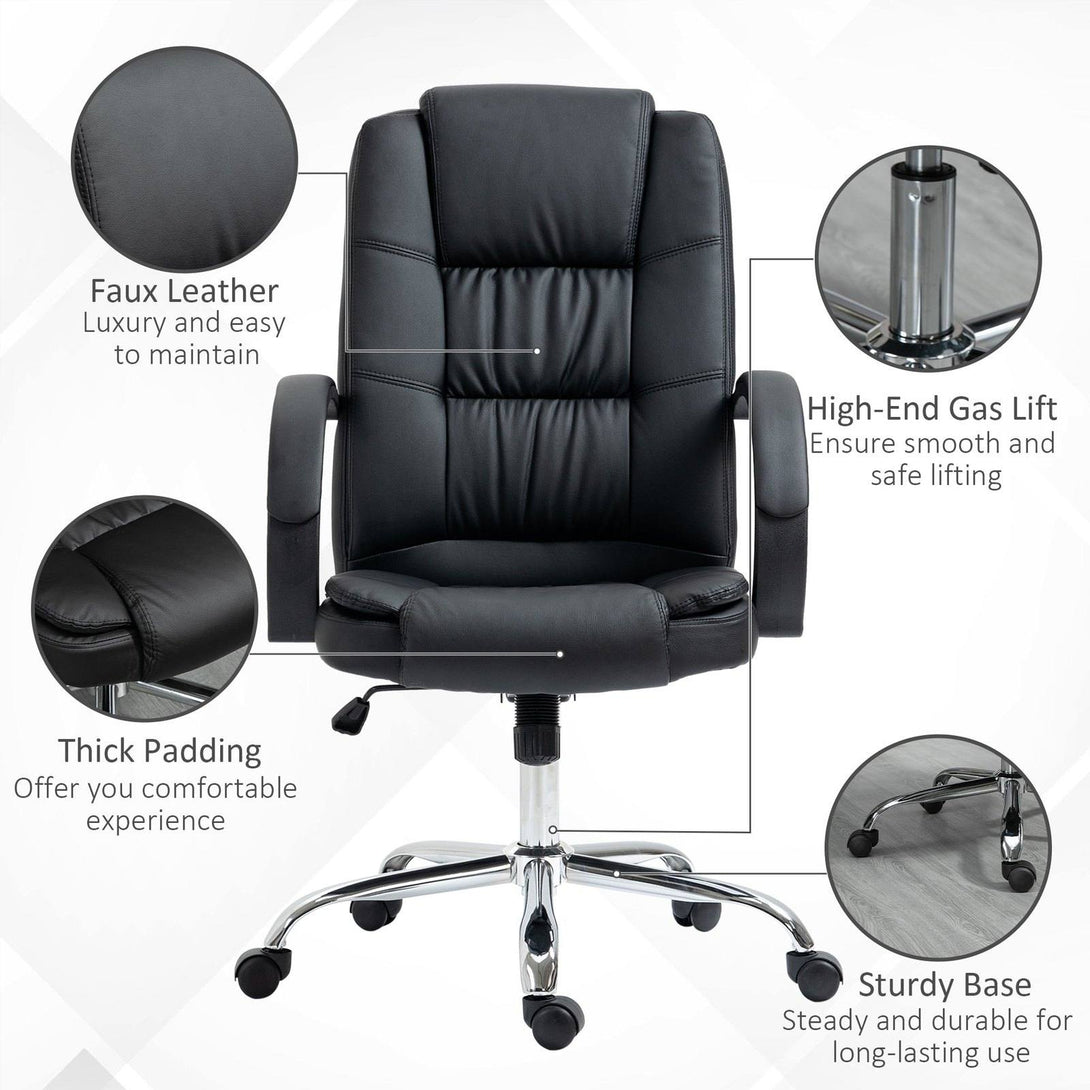 Don't let an uncomfortable seat ruin your productivity. Seat in this sleek Vinsetto computer chair and feel your productivity increase. Made with comfort in mind, this desk chair for home office with a 360-degree swivel allows you to easily move around your workplace and gives you the flexibility you need. You can raise or lower this comfy chair's seat for personal customization and rock smoothly to relax. A great addition to your home office or another workplace.