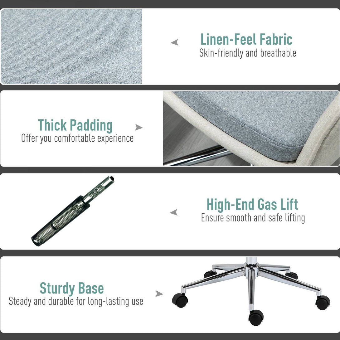 Vinsetto Leisure Office Chair Linen Swivel Computer Desk Chair Study With Wheel Beige