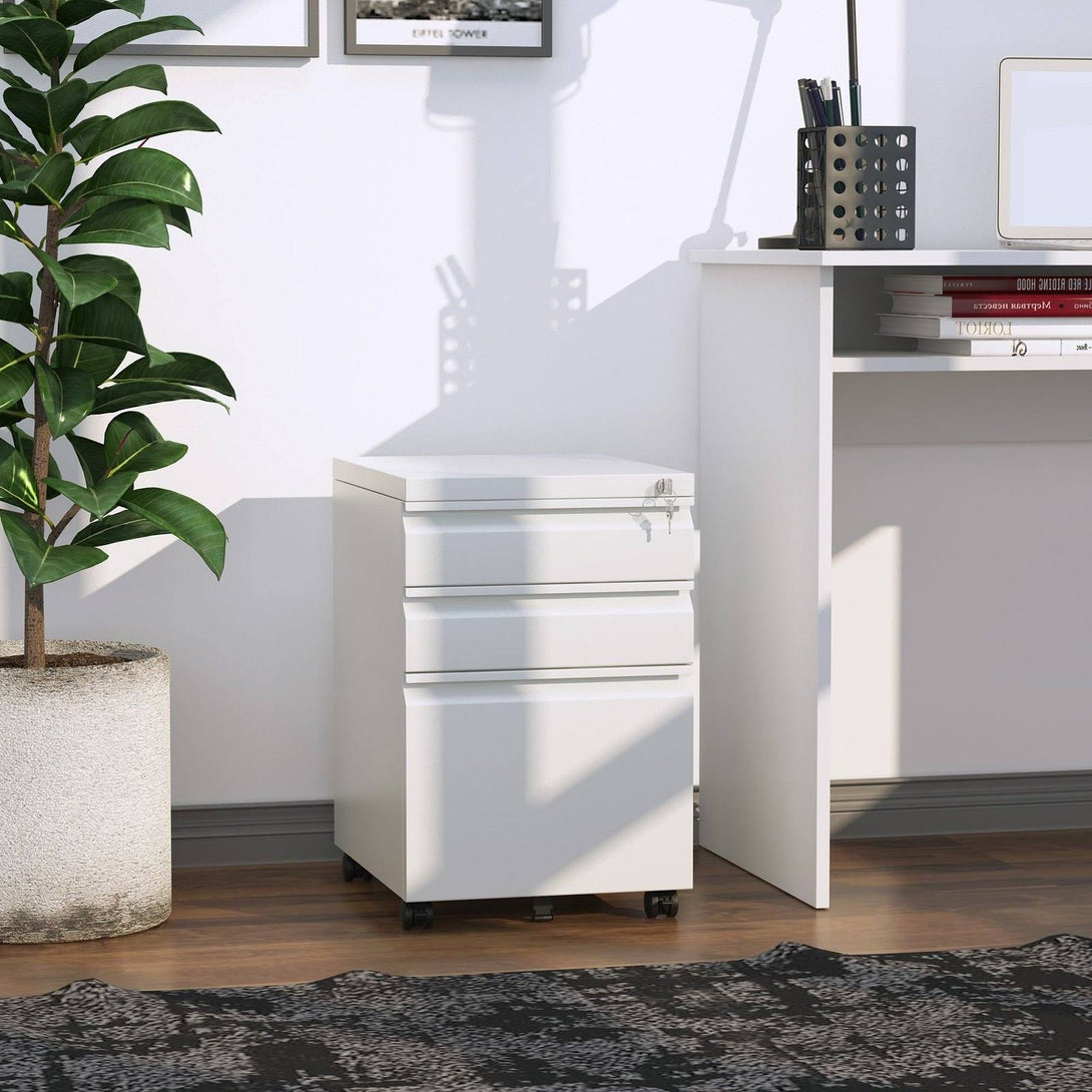 Vinsetto Mobile Vertical File Cabinet Lockable Metal Filling Cabinet with 3 Drawers and Anti-tilt Design
