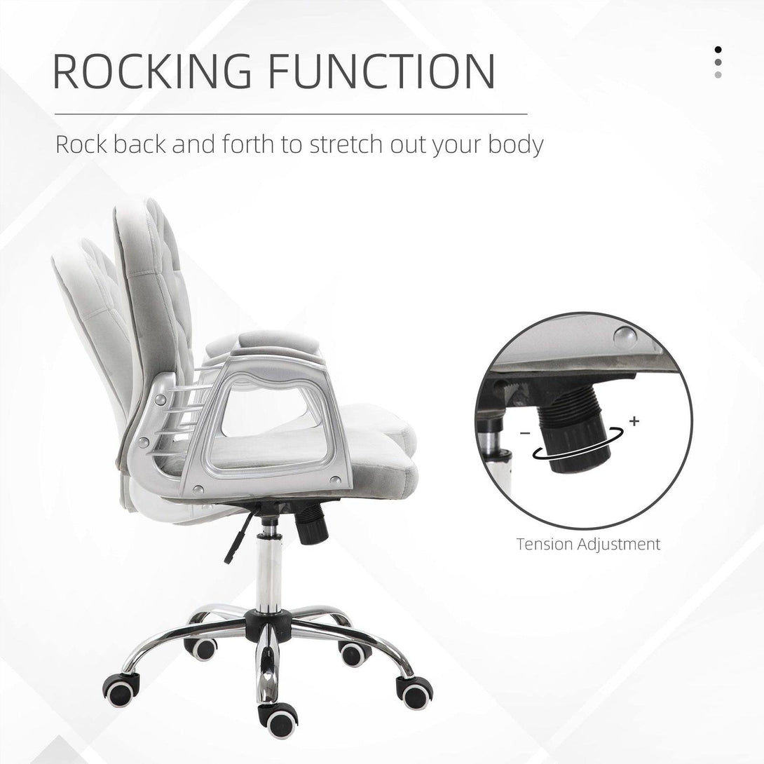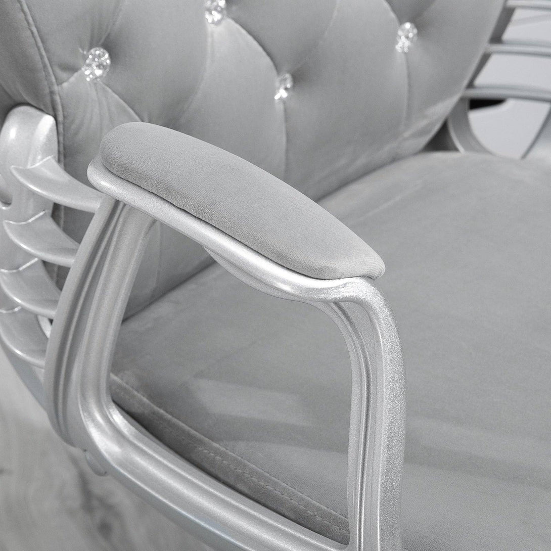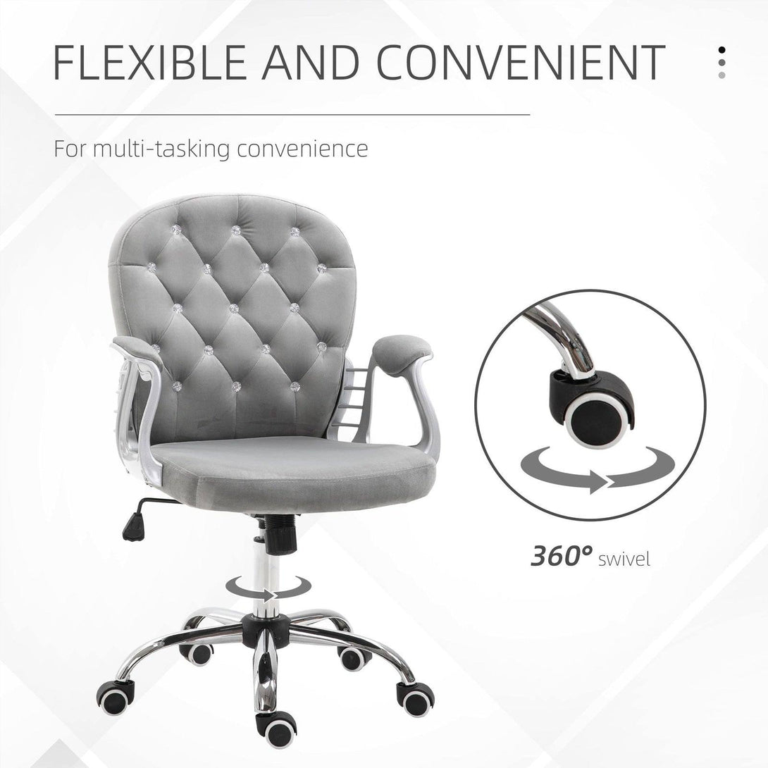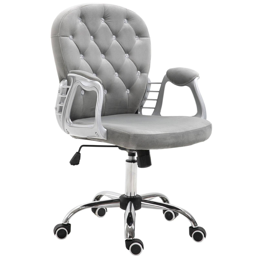 Inject a touch of glam and sophistication into your work day with this pc chair from Vinsetto. Comfortable features include thick padding, a high and slightly-curved back, high armrests and adjustable height. Wrapped in soft velour upholstery, the back is scattered with an abundance of diamantes for top glamour. Completed with five wheels for easy movement. This swivel chair is a sparkling addition to your home office.