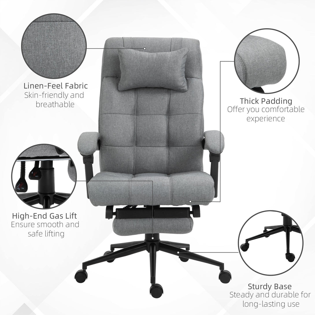 Vinsetto Office Chair With Footrest Ergonomic Office Chair With Armrests Lumber Support And Headrest Light Grey