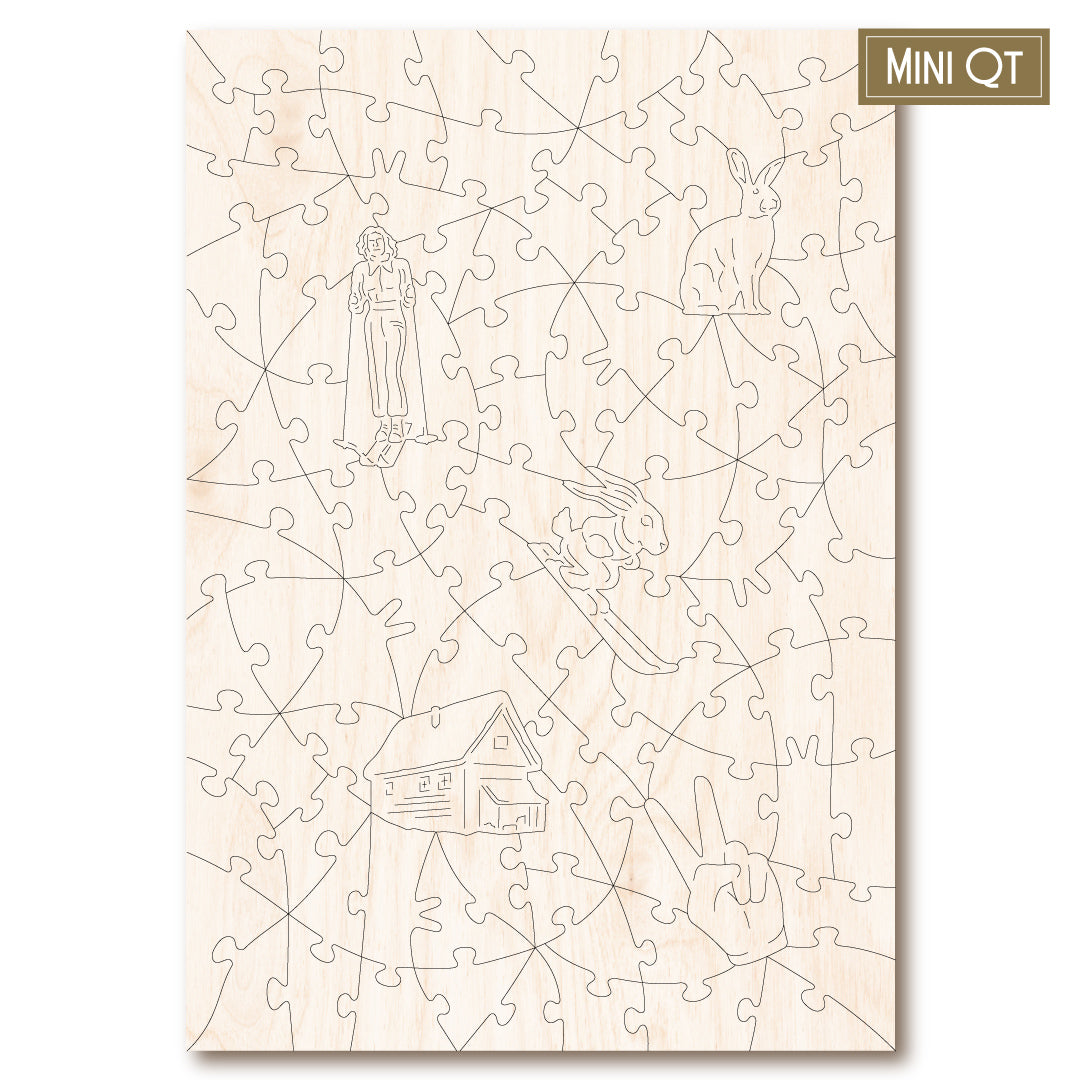 Our MINI QT puzzles are laser cut from thick, 4mm plywood and include 5 whimsies - they make a great puzzle snack!
