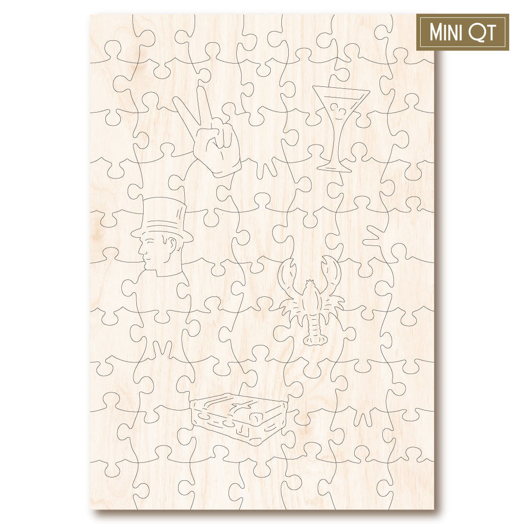 Our MINI QT puzzles are laser cut from thick, 4mm plywood and include 5 whimsies - they make a great puzzle snack!
