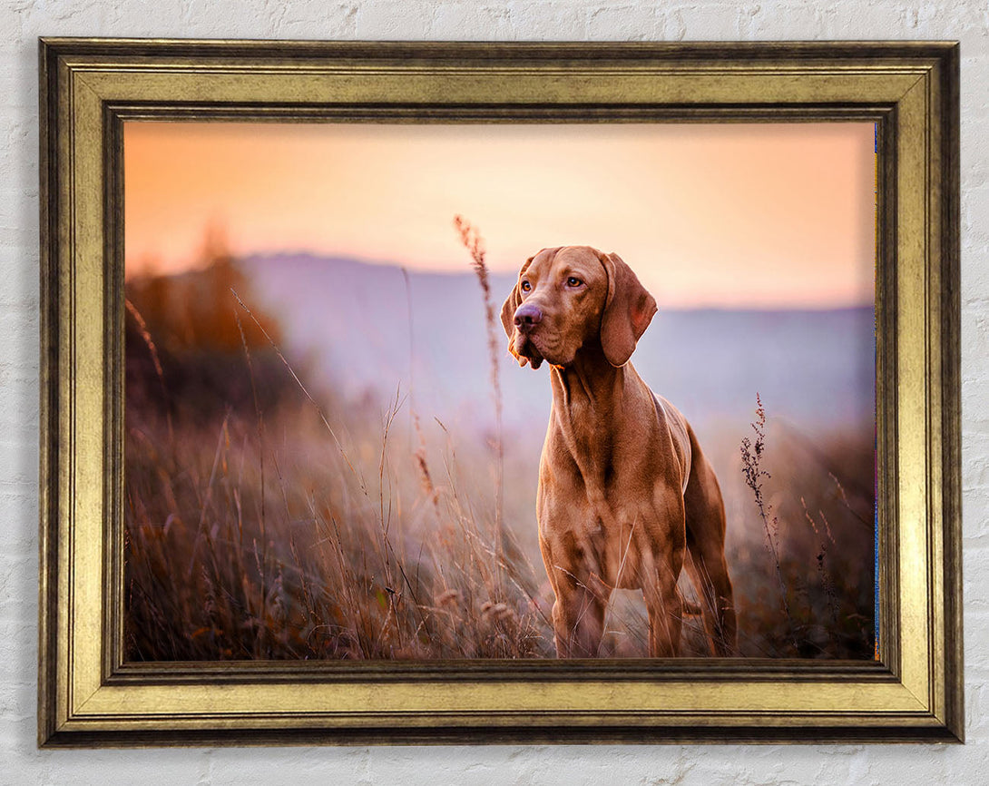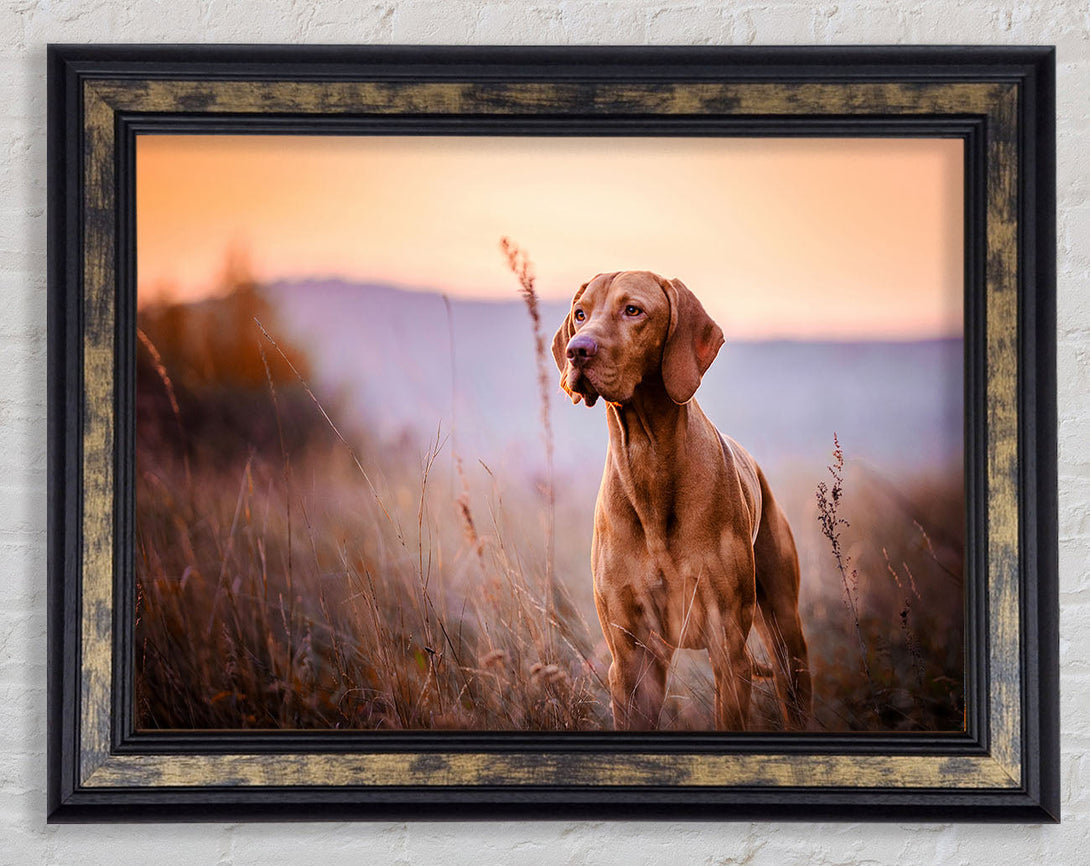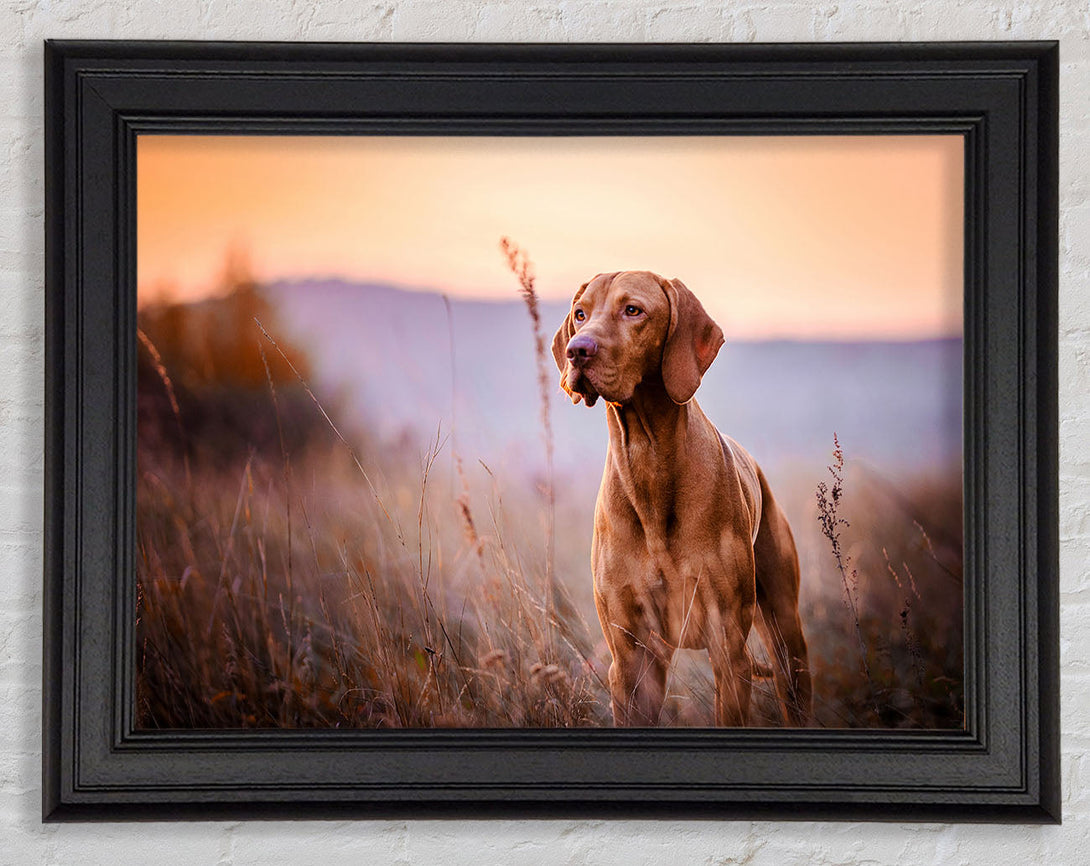 Vizsla Sunset Dog Framed Print
