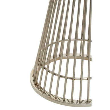 The Vogue dining table has a strong art deco influence, with bold geometrical features balanced by a harmony between materials. The base is crafted from strong silver stainless steel, supporting a large round glass table top.