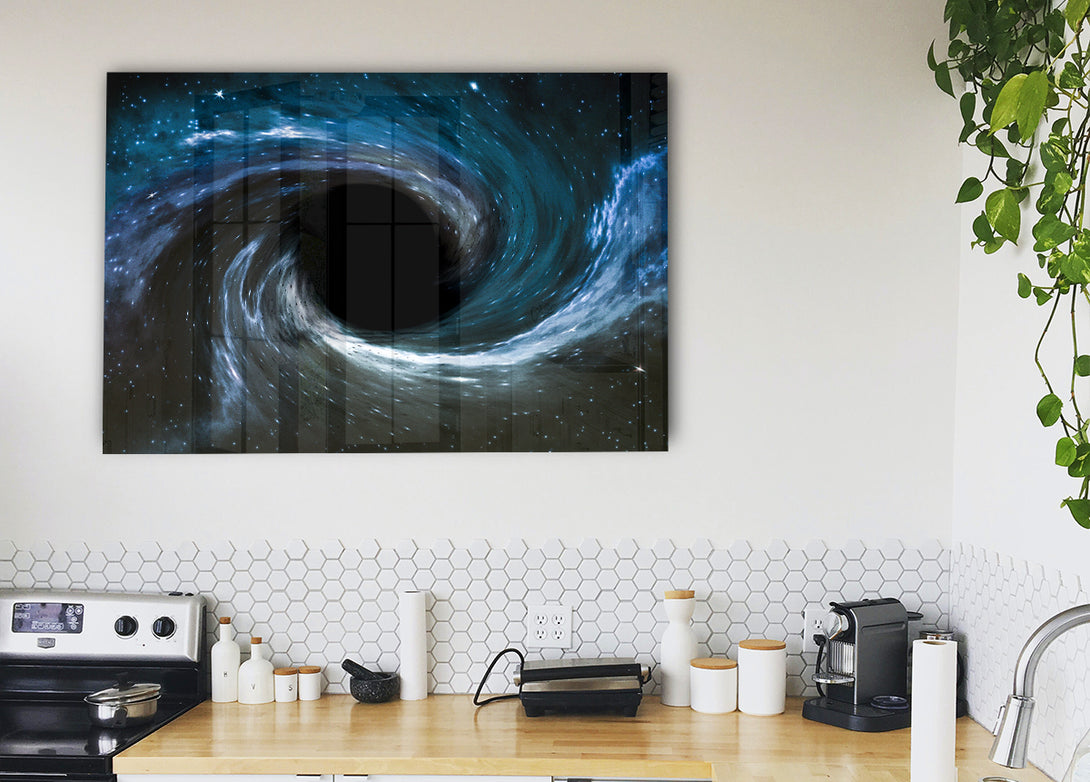 Vortex in space black hole acrylic print, UV printed onto 5mm thick acrylic glass. Comes with everything you need to hang on your wall.