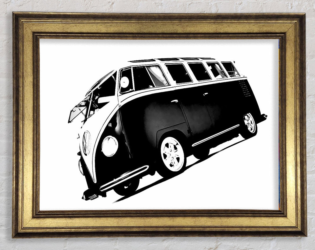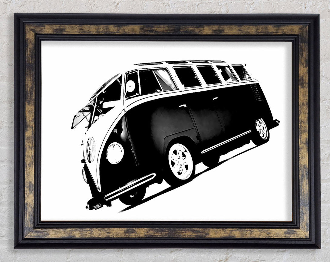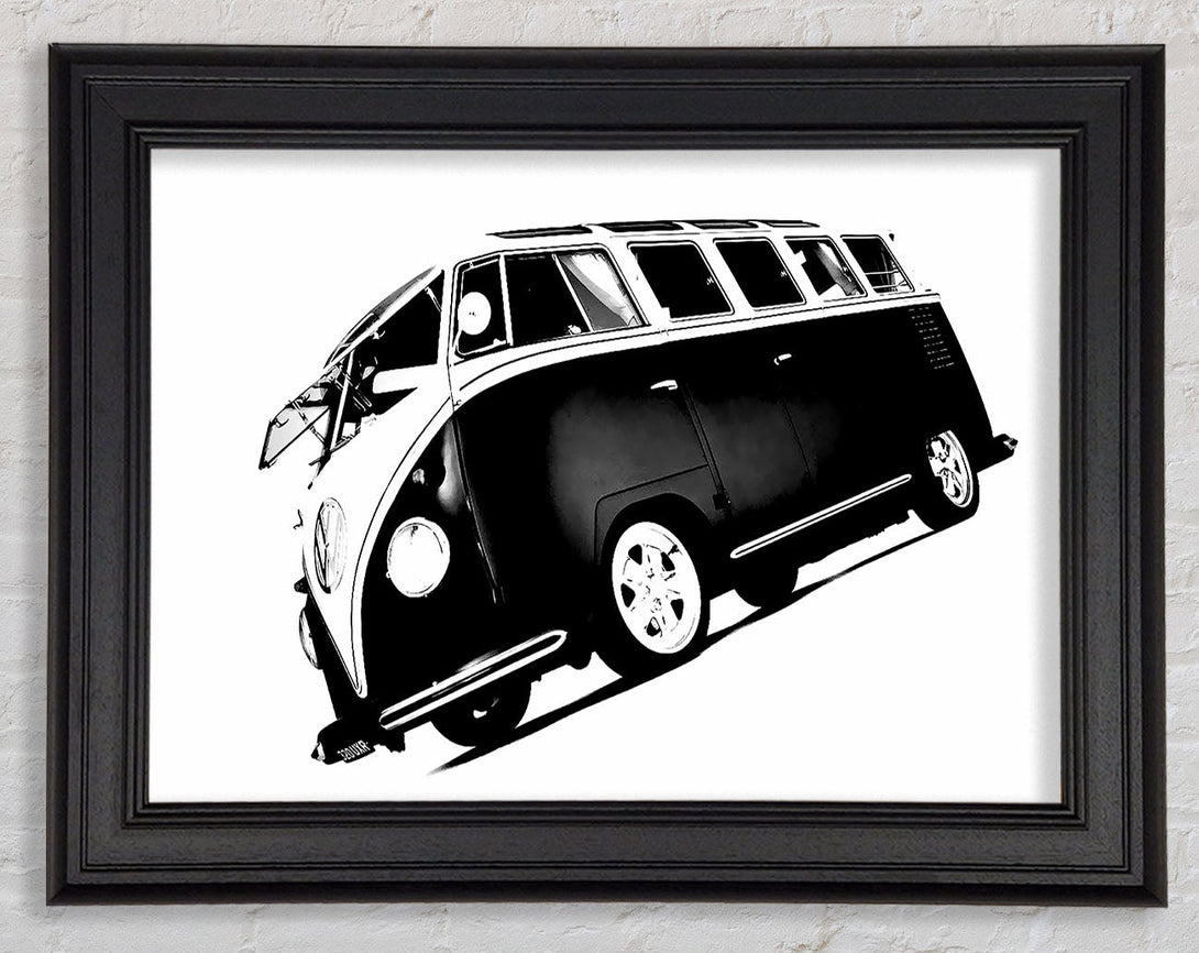 VW Camper Van Black n White Framed Print