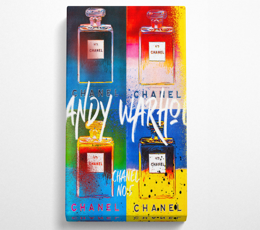 Warhol Perfume wide canvas, printed on coated polyester canvas. Mounted on to a 44mm box frame, ready to hang.