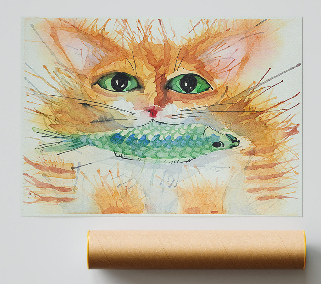 Our Watercolour Cat With Fish Poster is printed 260 GSM premium lustre paper that offers vibrant colours and exceptional detail.